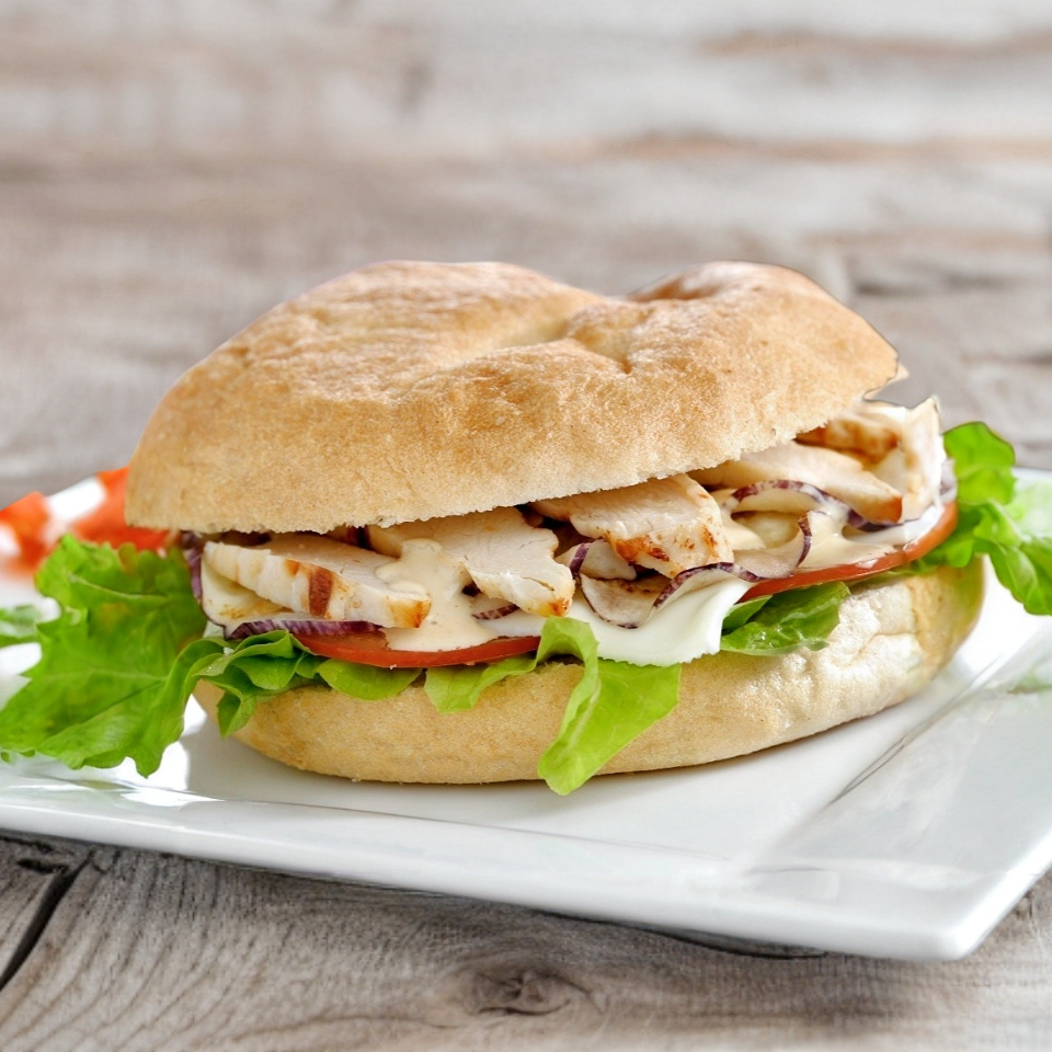 Pollo, jamon, queso para gratinar y ensalada. 3 pisos.