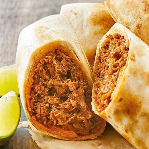 2 burritos de pierna tamaño grande con ensalada de lechuga y frijoles.