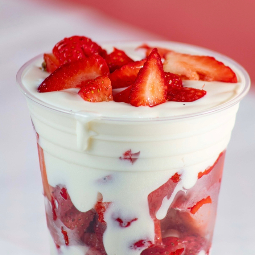 FRESA NATURAL CON CREMA DULCE PREPARACION ESPECIAL DE LA CASA