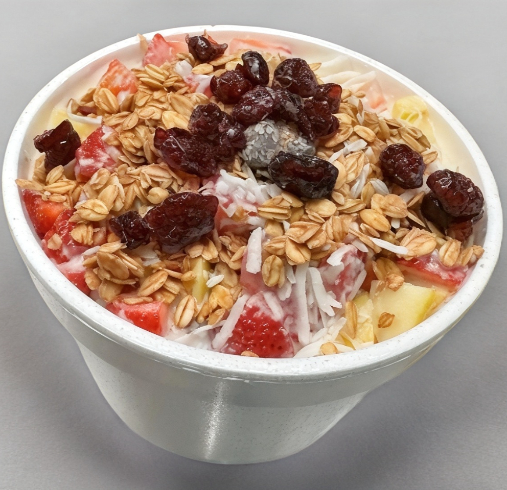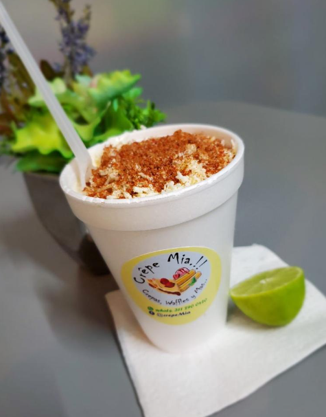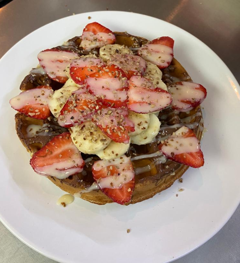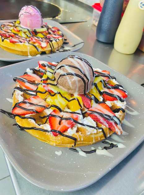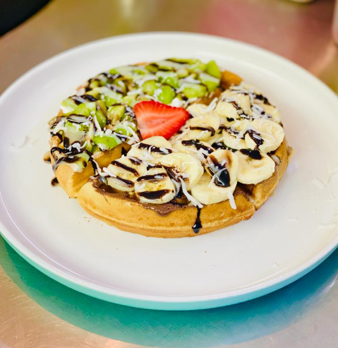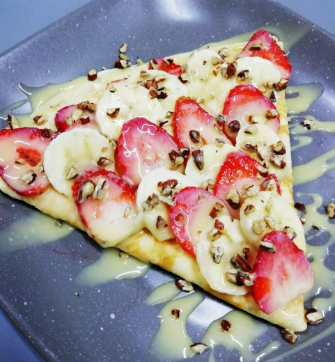 Philadelphia, Nutella, plátano, fresa, durazno, plátano, kiwi, Lechera, coco y nieve.