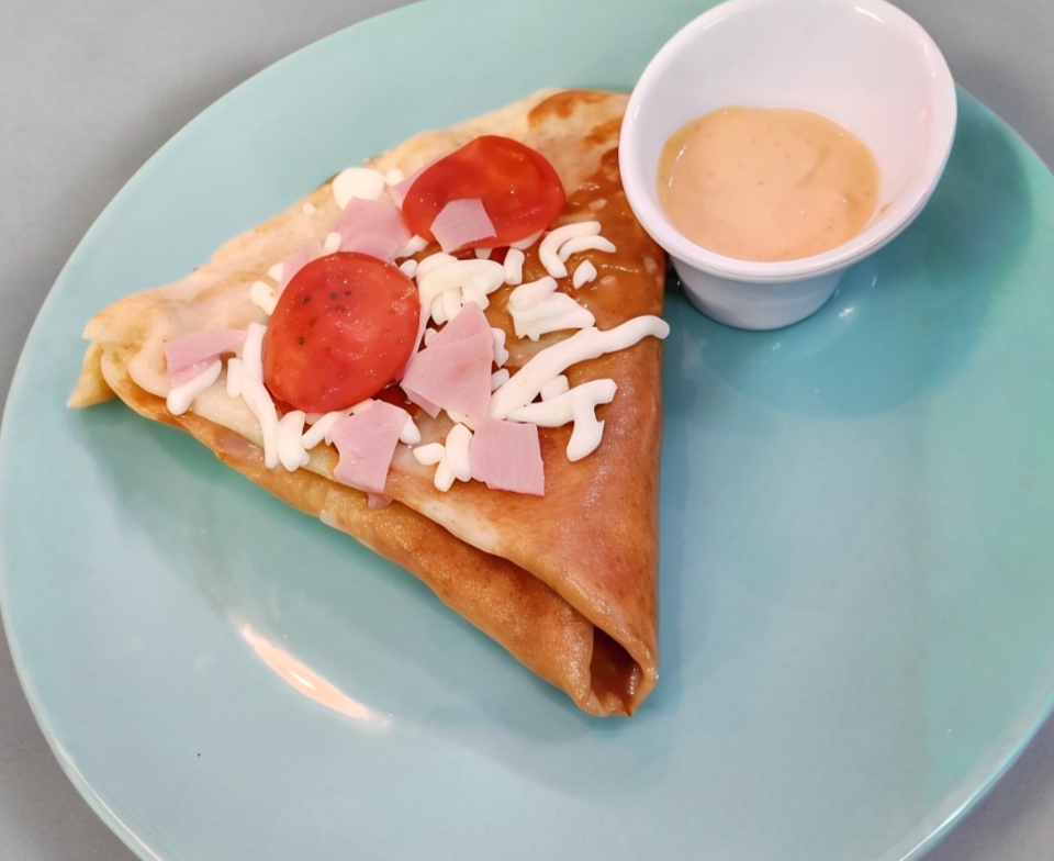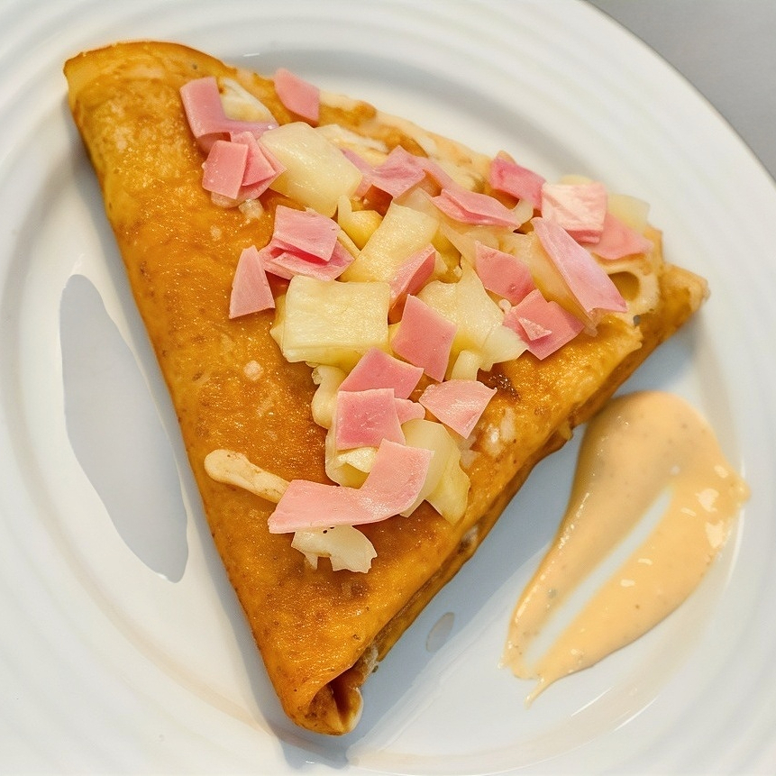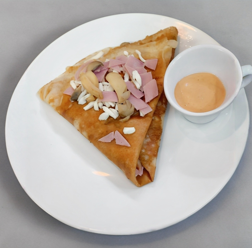 Queso, jamón, champiñones, 1 aderezo a elegir.