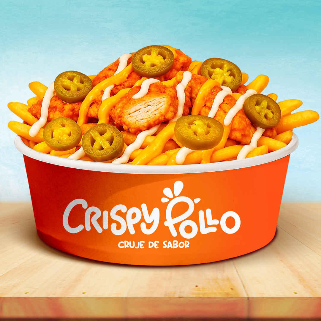 Bowl para compartir, con una deliciosa base de arroz, papas fritas o combinado, kikiritiras bañadas con una combinación de ranch y queso cheddar, con un toque picosito de rodajas de jalapeño.
