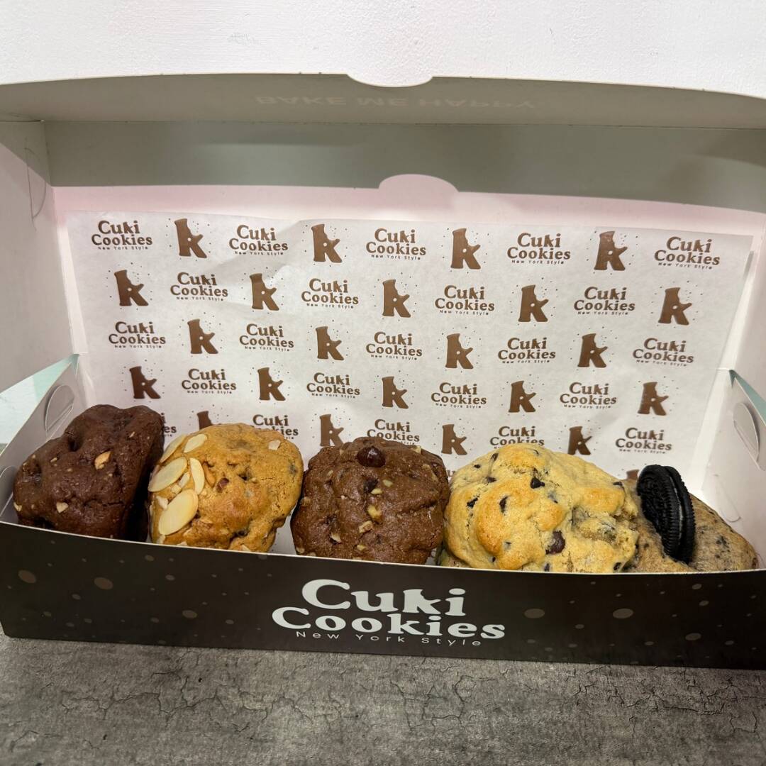 Caja de 5 Galletas de 145 gramos c/u. Al confirmar tu pedido, puedes indicarnos por mensaje los sabores de tu preferencia.