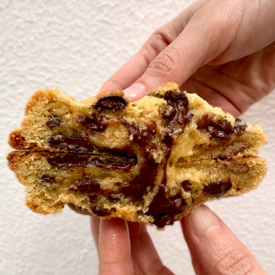 Galleta estilo New York de 145 gramos, elaborada con chocolate real y chispas de chocolate.
