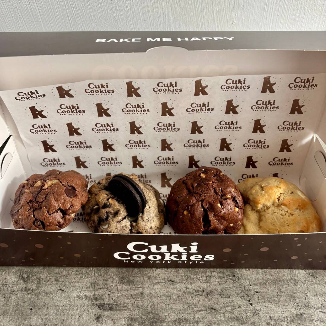 Caja con 4 galletas de 145 gramos c/u. Al confirmar tu pedido, puedes indicarnos los sabores de tu preferencia.