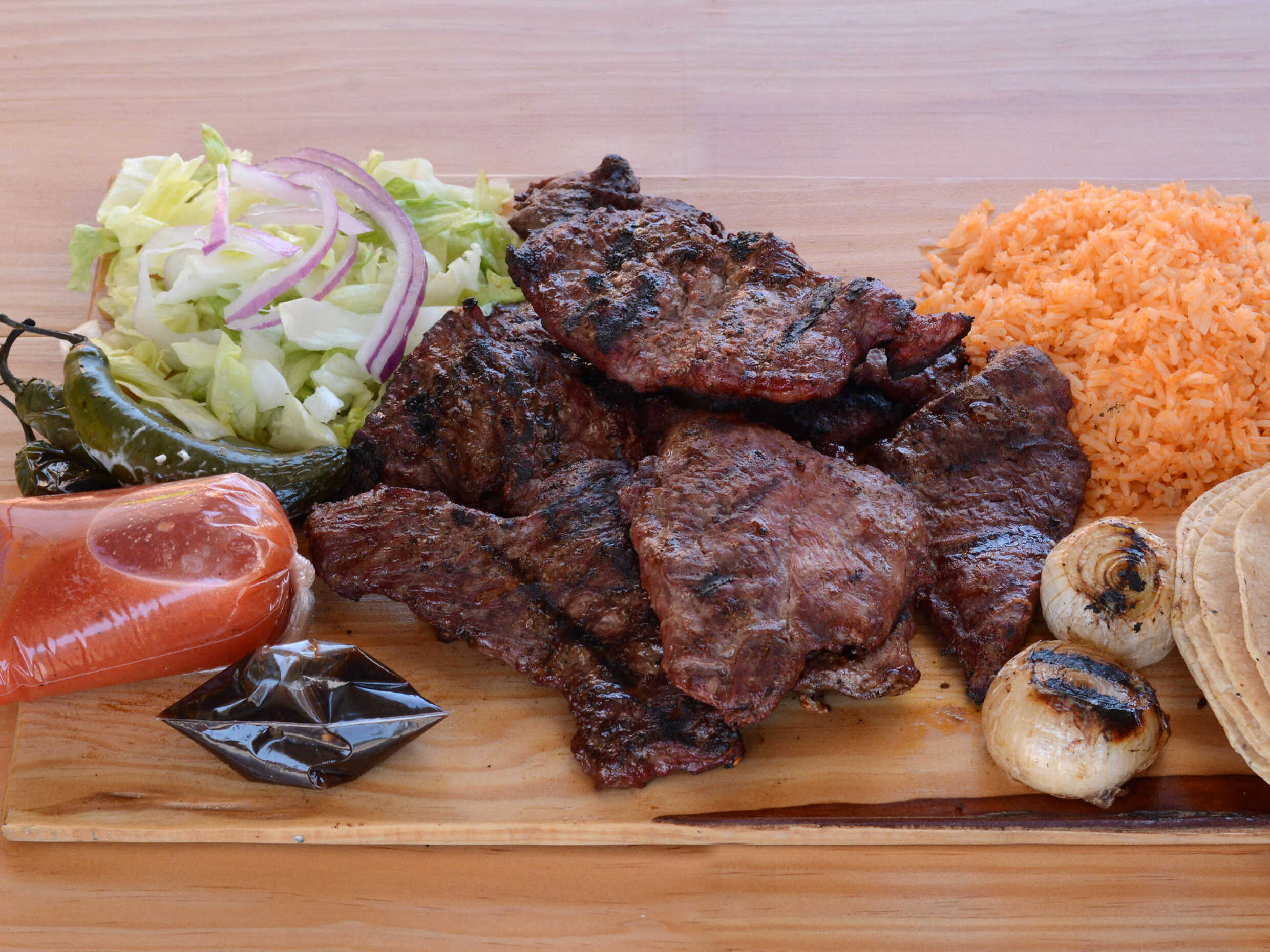 Incluye: chiles,cebollitas,tortillas,salsa roja,salsa especial y ensalada ( hasta agotar existencias)