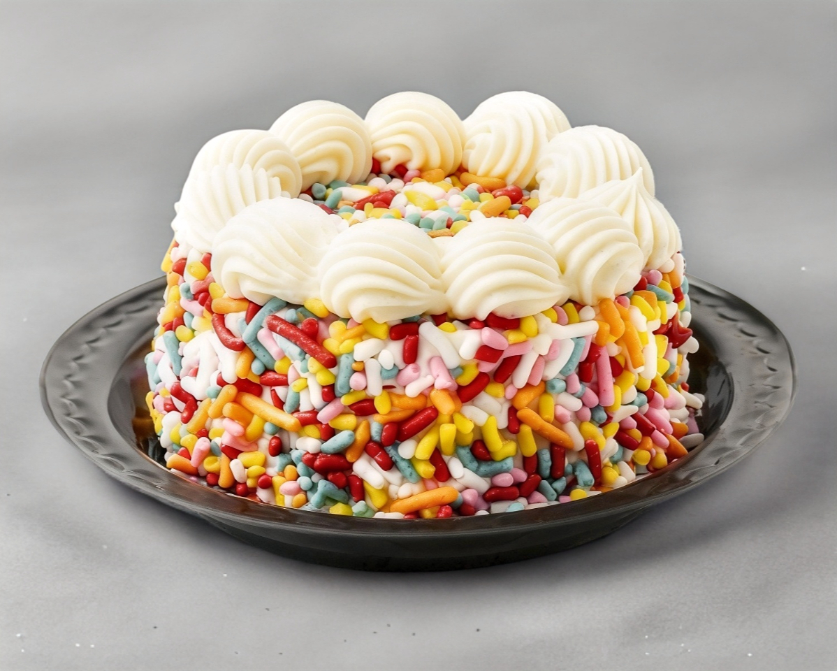 Bizcocho de vainilla bañado en Tres Leches, con un centro de Crema de Queso.