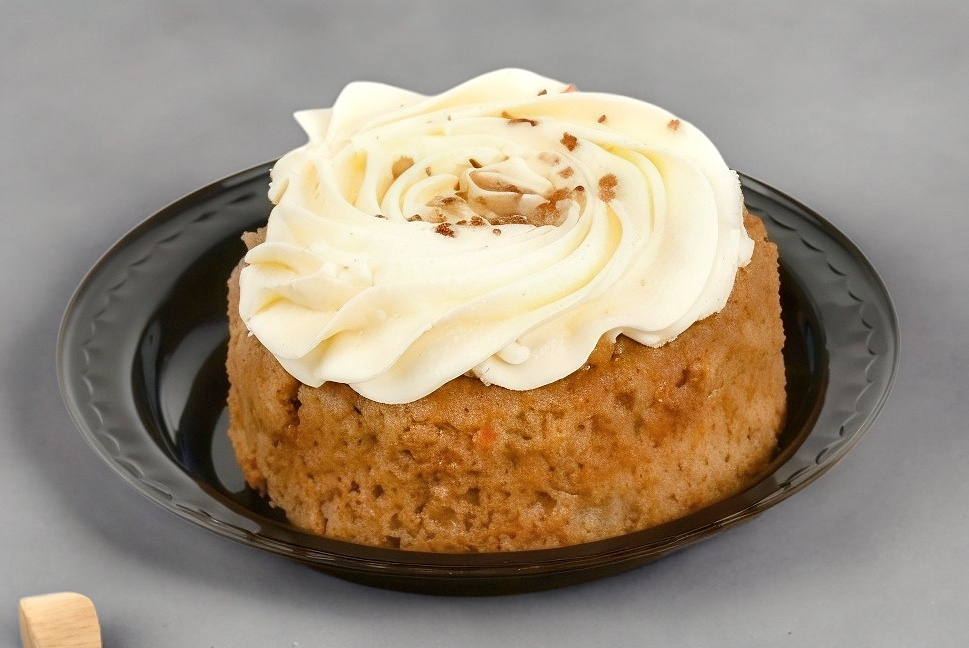 Bizcocho de zanahoria, cubierto de betún de queso crema.