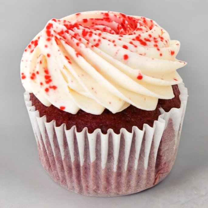 Bizcocho de red velvet, cubierto de betún de queso crema.