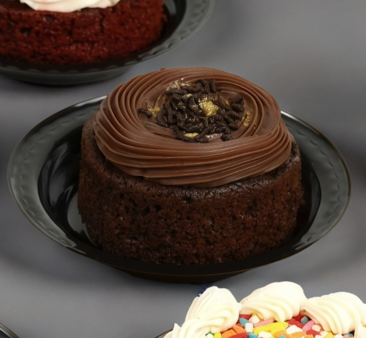 Bizocho de vainilla, bañado en jarabe de licor de café, relleno de chocolate, crumble y cubierto de Betún de queso crema.