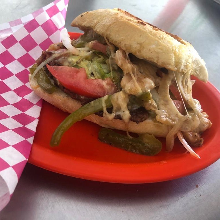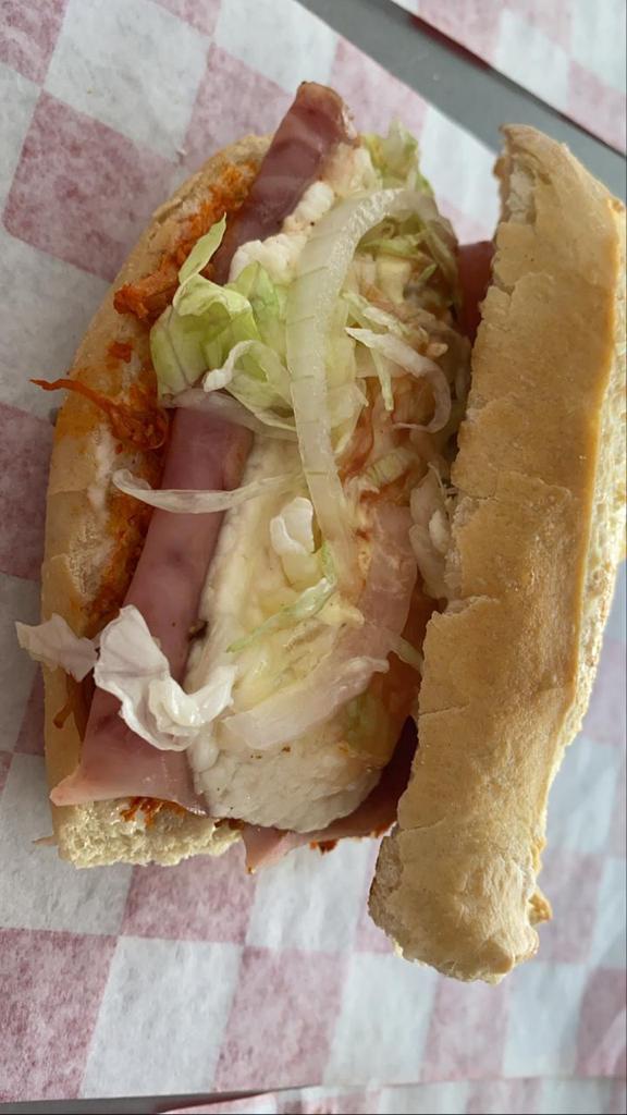 Carne de res, Salchicha, Jamos, Queso Asadero, lechuga, cebolla y jitomate con catsup y mostaza, mayonesa.