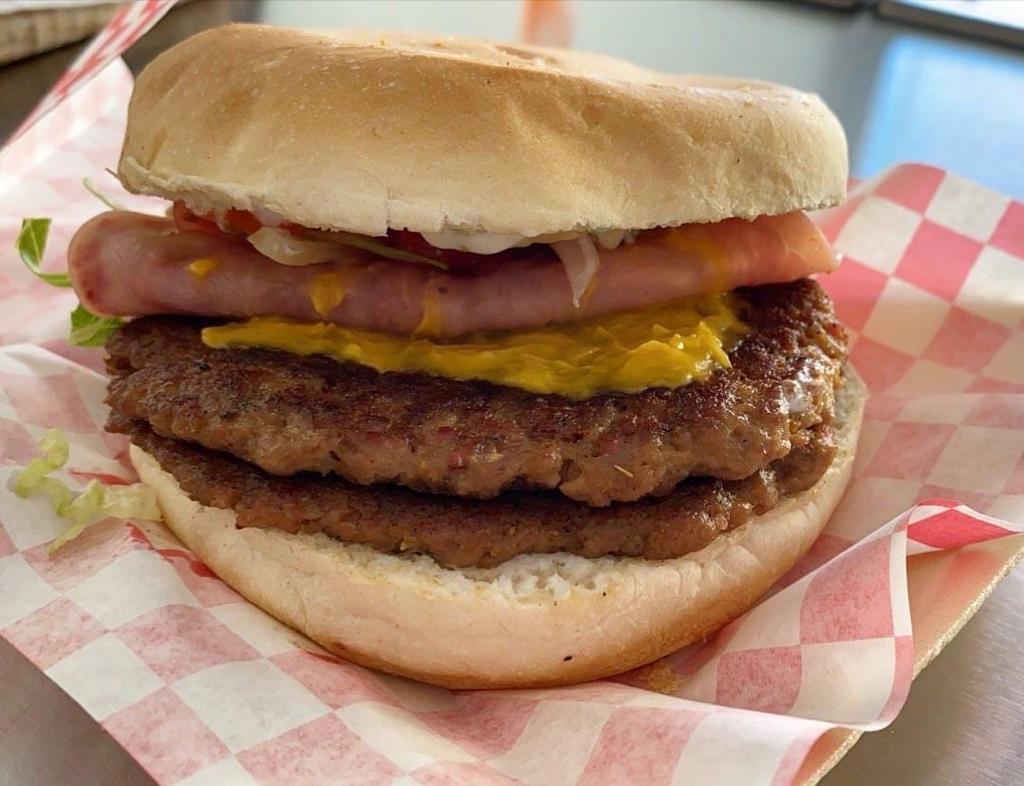 Carne de res, lechuga, cebolla y jitomate con catsup y mostaza, mayonesa.