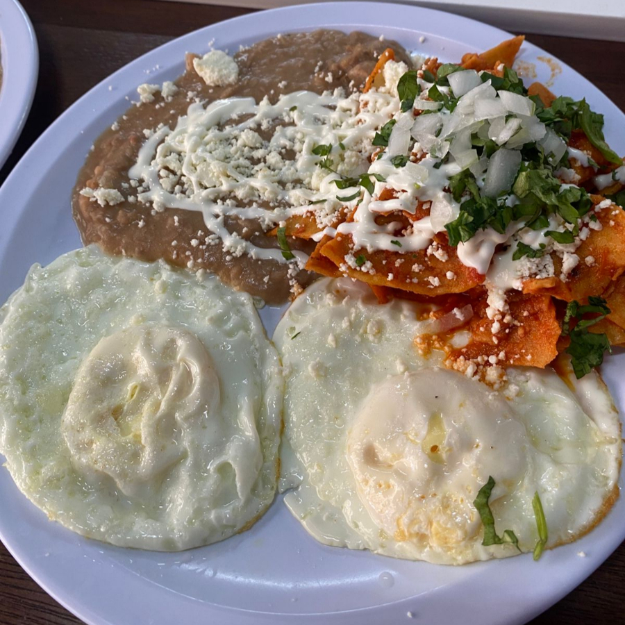 Par de huevos preparados a tu elección, servidos con chilaquiles clásicos y frijoles de la casa. Incluye agua fresca del día. El clásico que nunca falla.