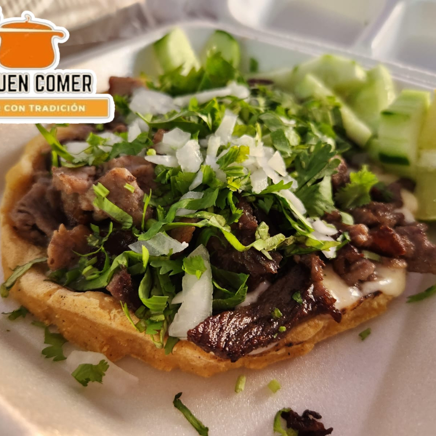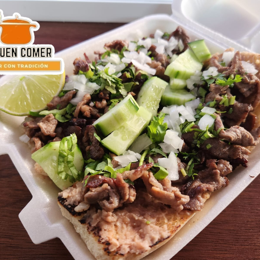 Mollete clásico preparado al momento. Elige entre Carne Asada, Chorizo o Mixto. Cubierto con queso fundido y sazón de la casa.