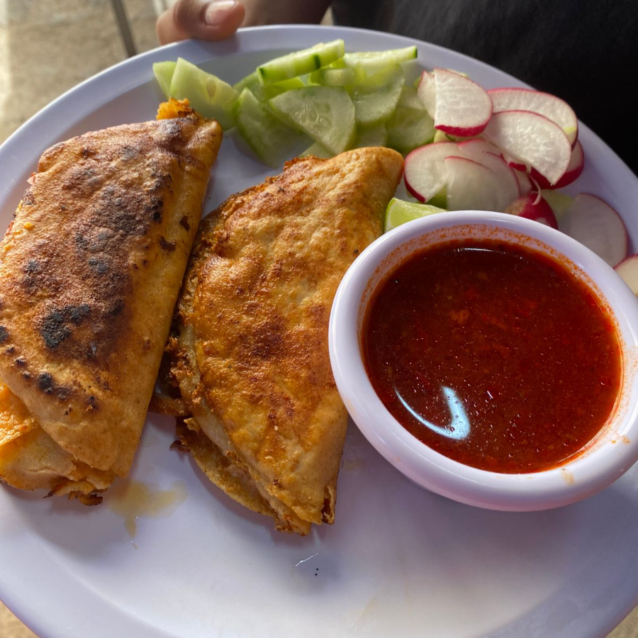 Quesadilla de maiz torteada, agrega proteina si lo deseas