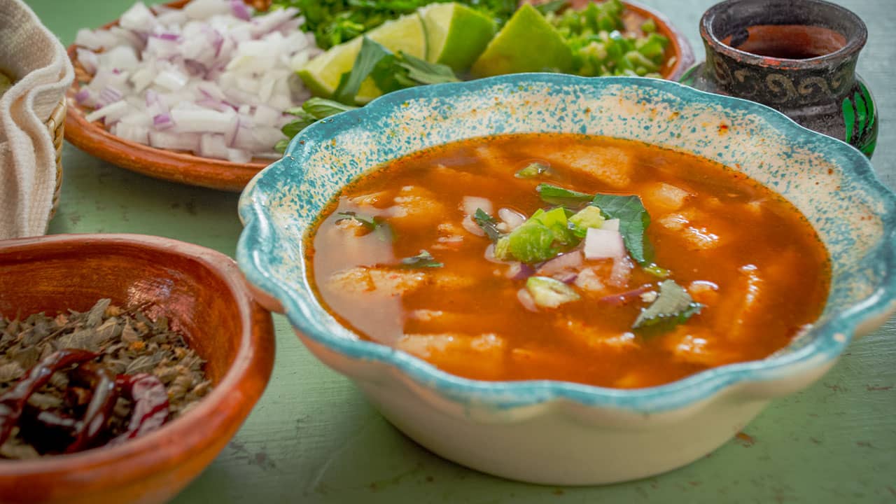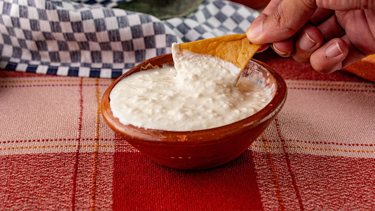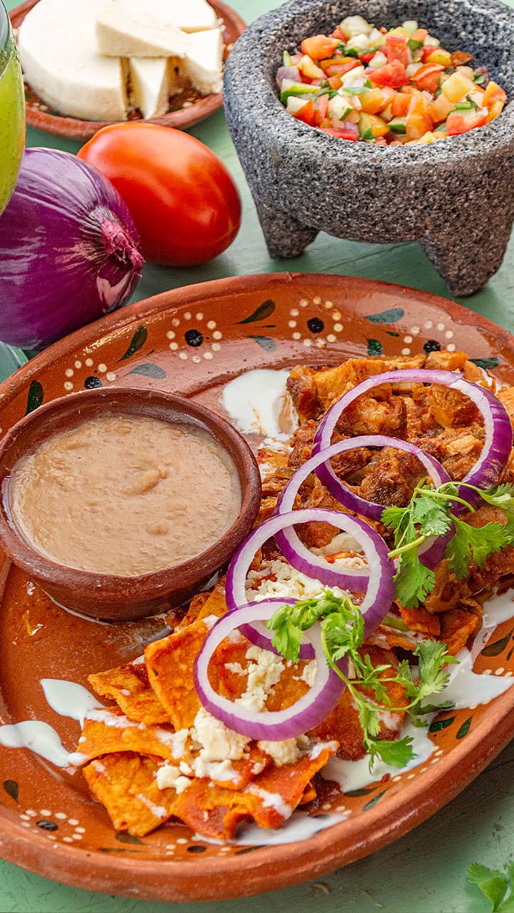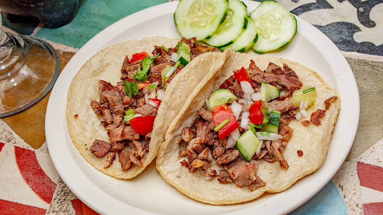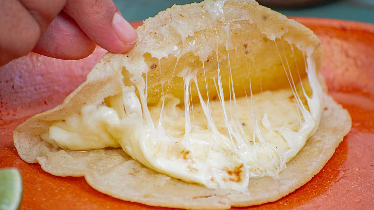 Tortilla gigante hecha a mano con chicharrón en salsa roja.