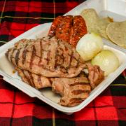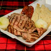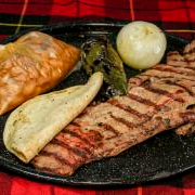 500gr de top sirloin, acompañado de 1 chorizo, 2 quesadillas, frijoles charros, salsas, tortillas, cebollitas y chiles toreados.