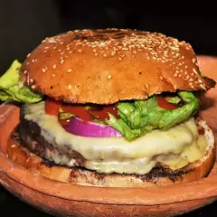 2 hamburguesas de 150gr cada una, acompañada de su verdura, catsup y mostaza