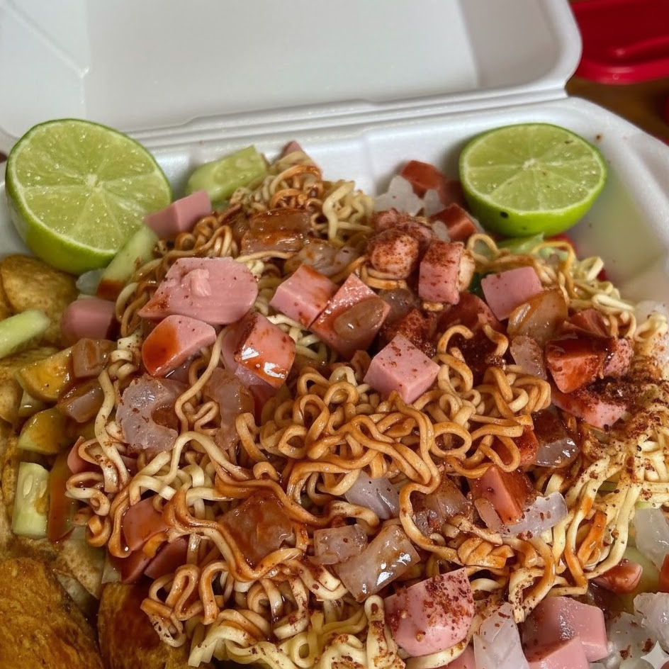 Maruchan + Sabritas + cuero + salchicha + pepino