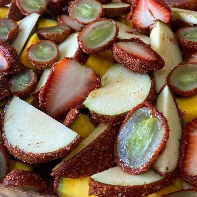 Fruta forrada (puede variar entre mango, manzana, fresa, uva, pepino, etc..)