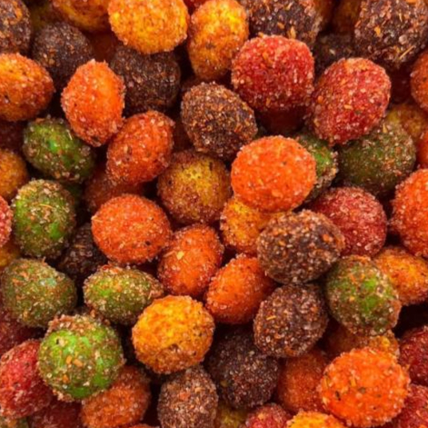 Variedad de gomitas enchiladas entre ellas puede venir: panditas, gusanitos, aro durazno, aro sandía, aro manzana, manguitos, aro neon ,oso neon ,gusano neon, jarritos, corazones, pingüinos, lichis, maracuyá, guanabana, llaves, sandías, etc...