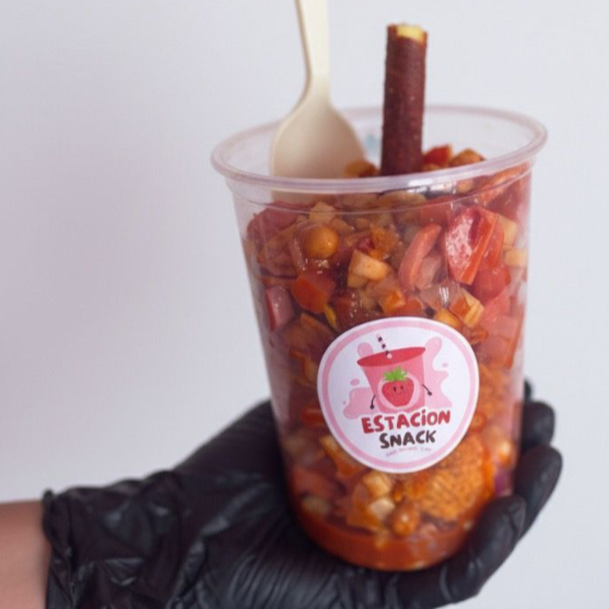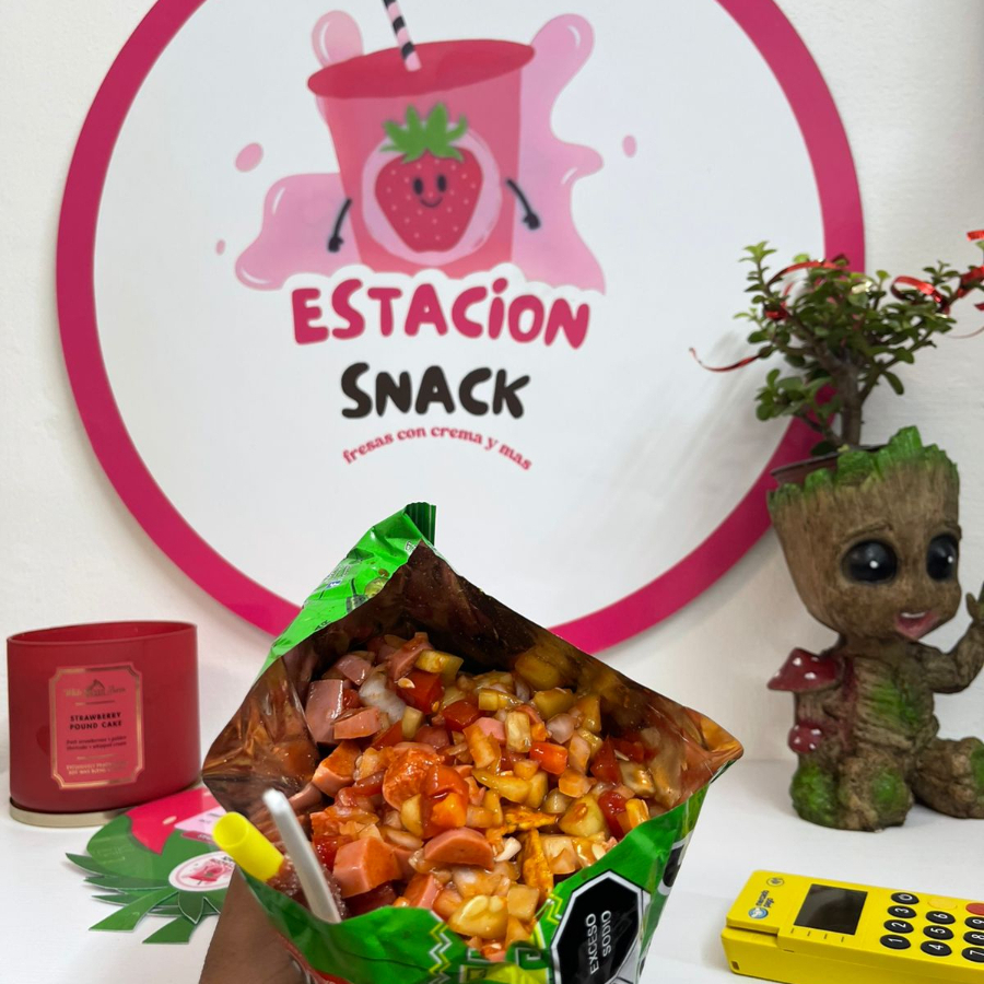 Tostitos ,salchicha ,verdura ,cacahuate ,picante Chamoy
