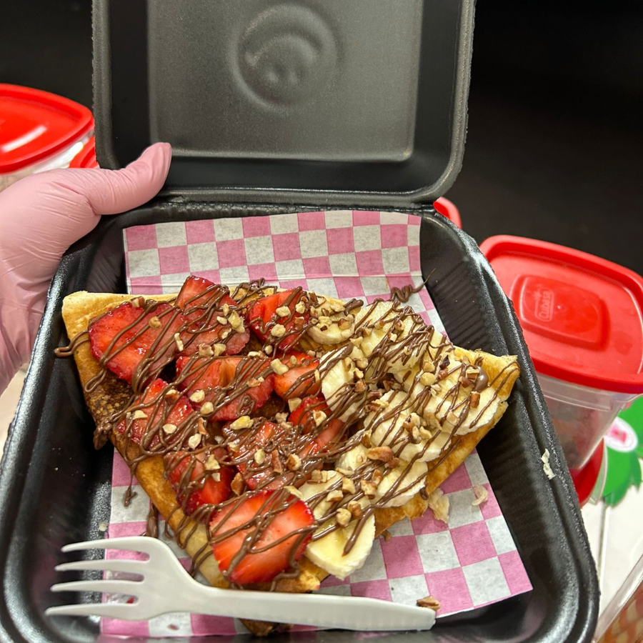 Crepa ,jarabe de chocolate ,topping a elegir,chantilly