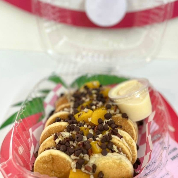 Mini hot cakes 12pz ,fruta a elegir y topping a elegir