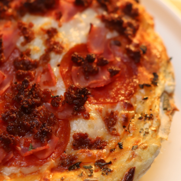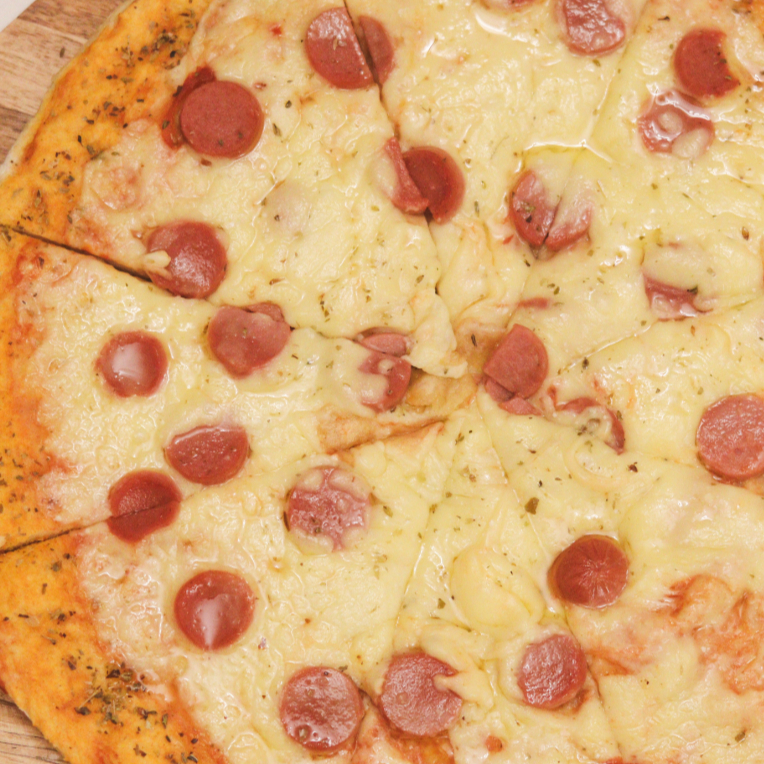 Rodajas de salchicha, base crujiente y fundido perfecto; un sabor familiar.