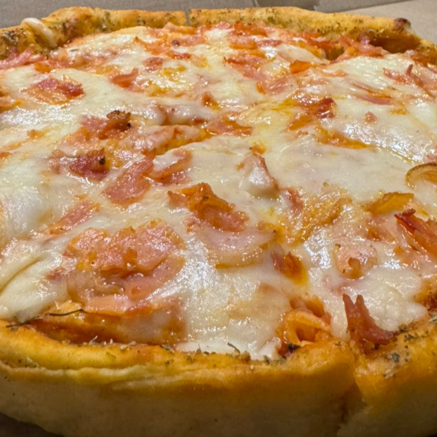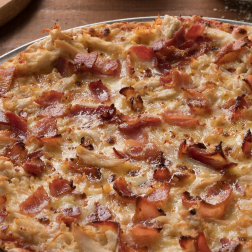 Suave y ahumada, pollo y tocino con aderezo chipotle de la casa, la vuelven una pizza cálida.