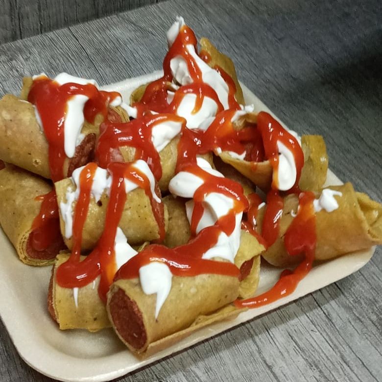 salchicha enrollada con tortilla de maiz
