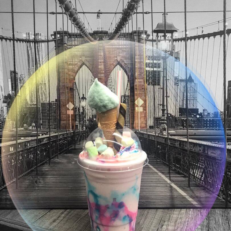 sabor chocoberries con un topping de bombones y dulces de colores