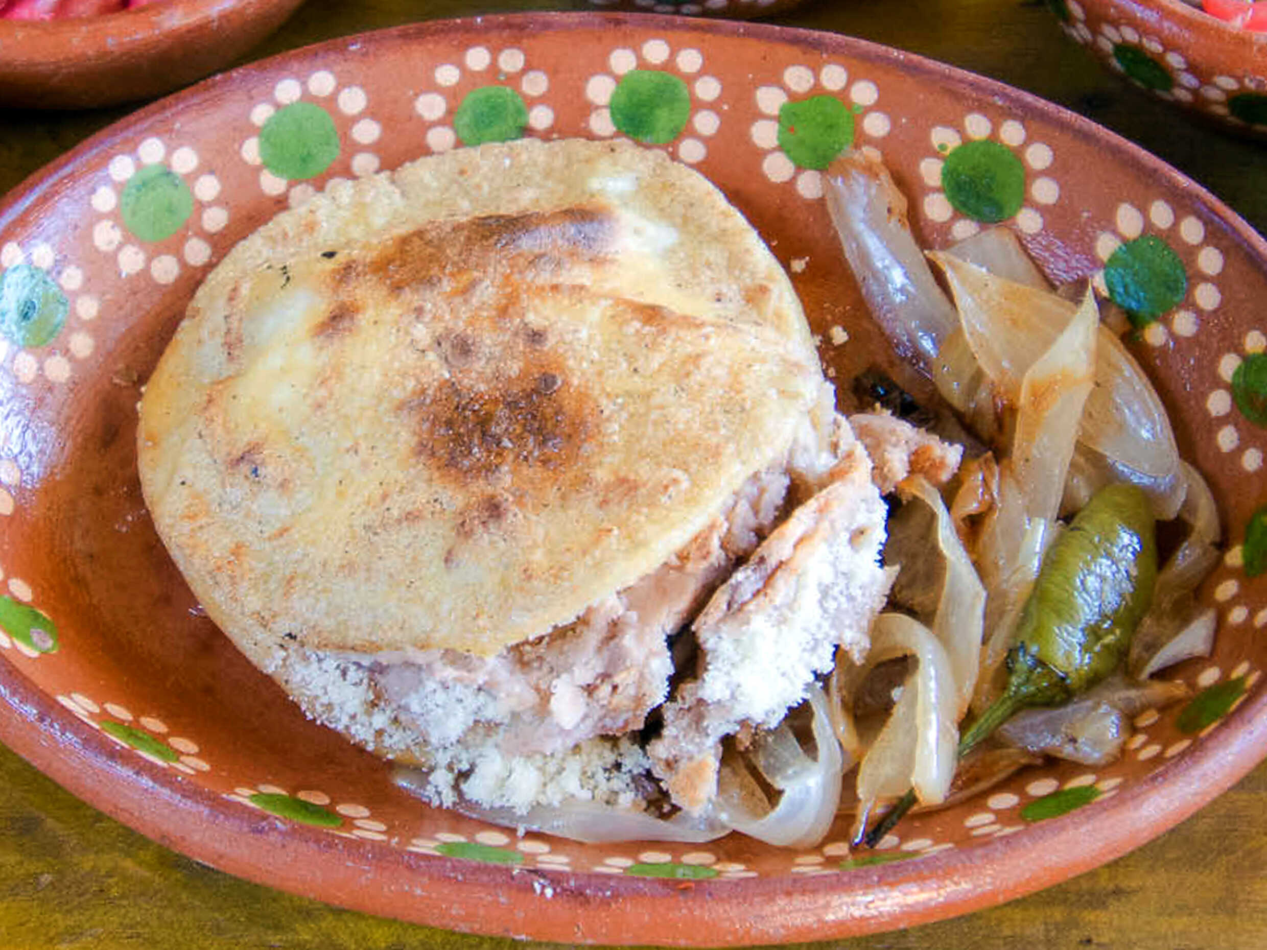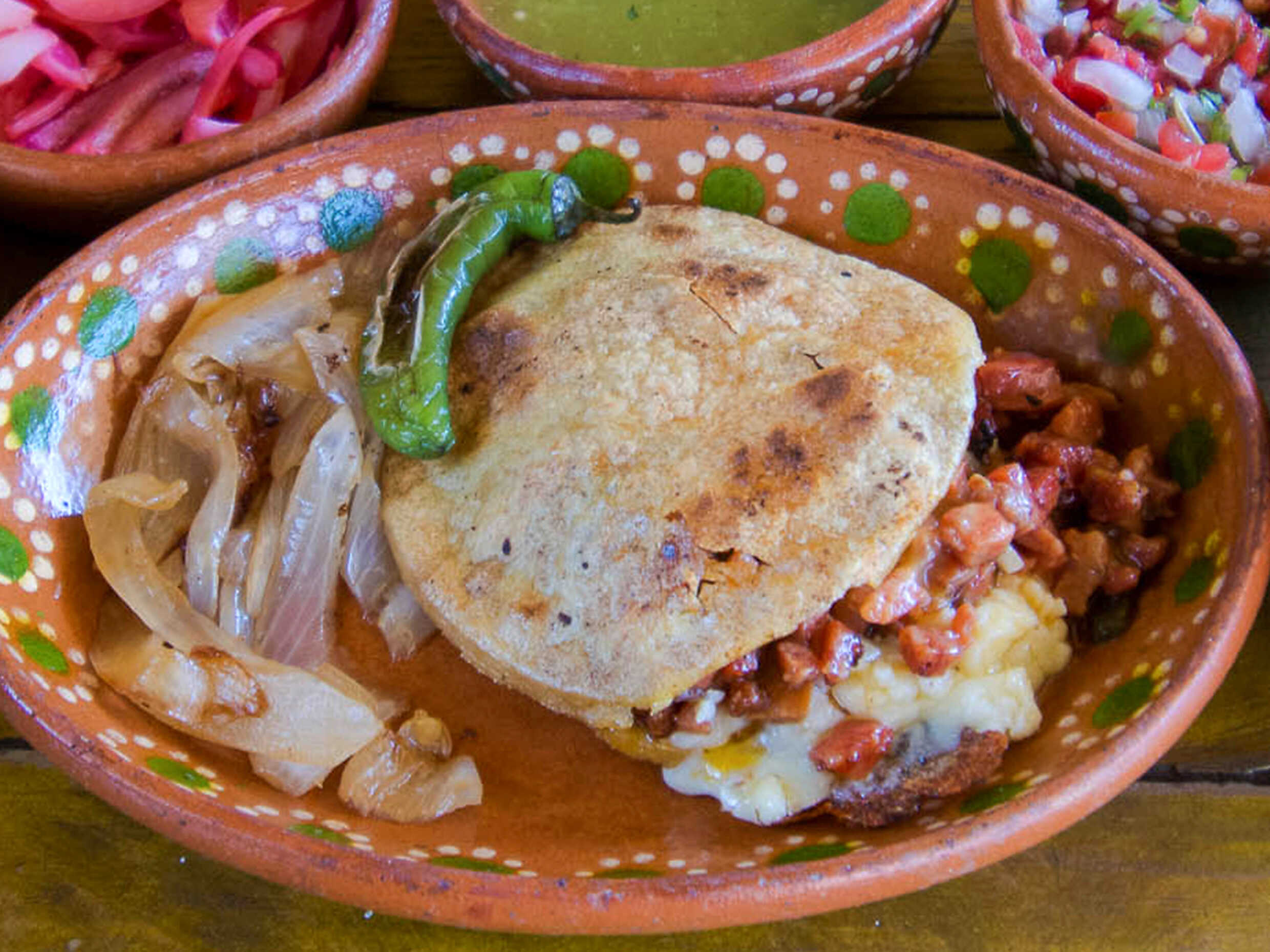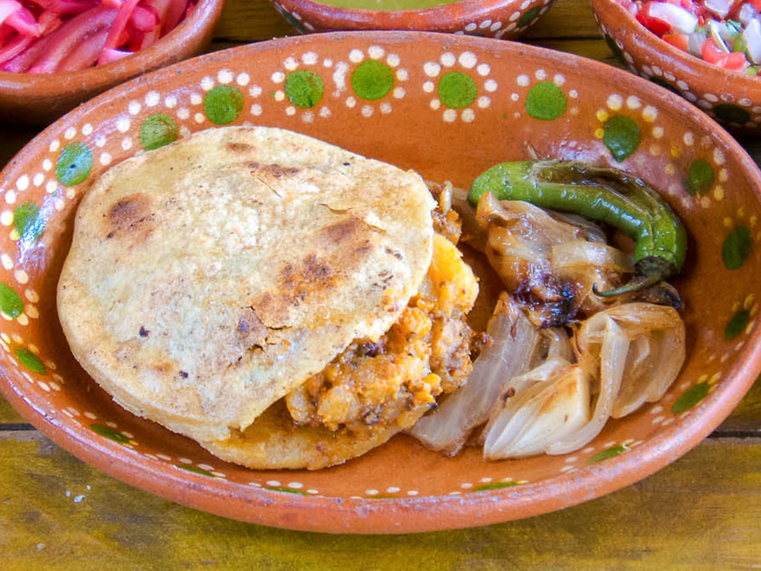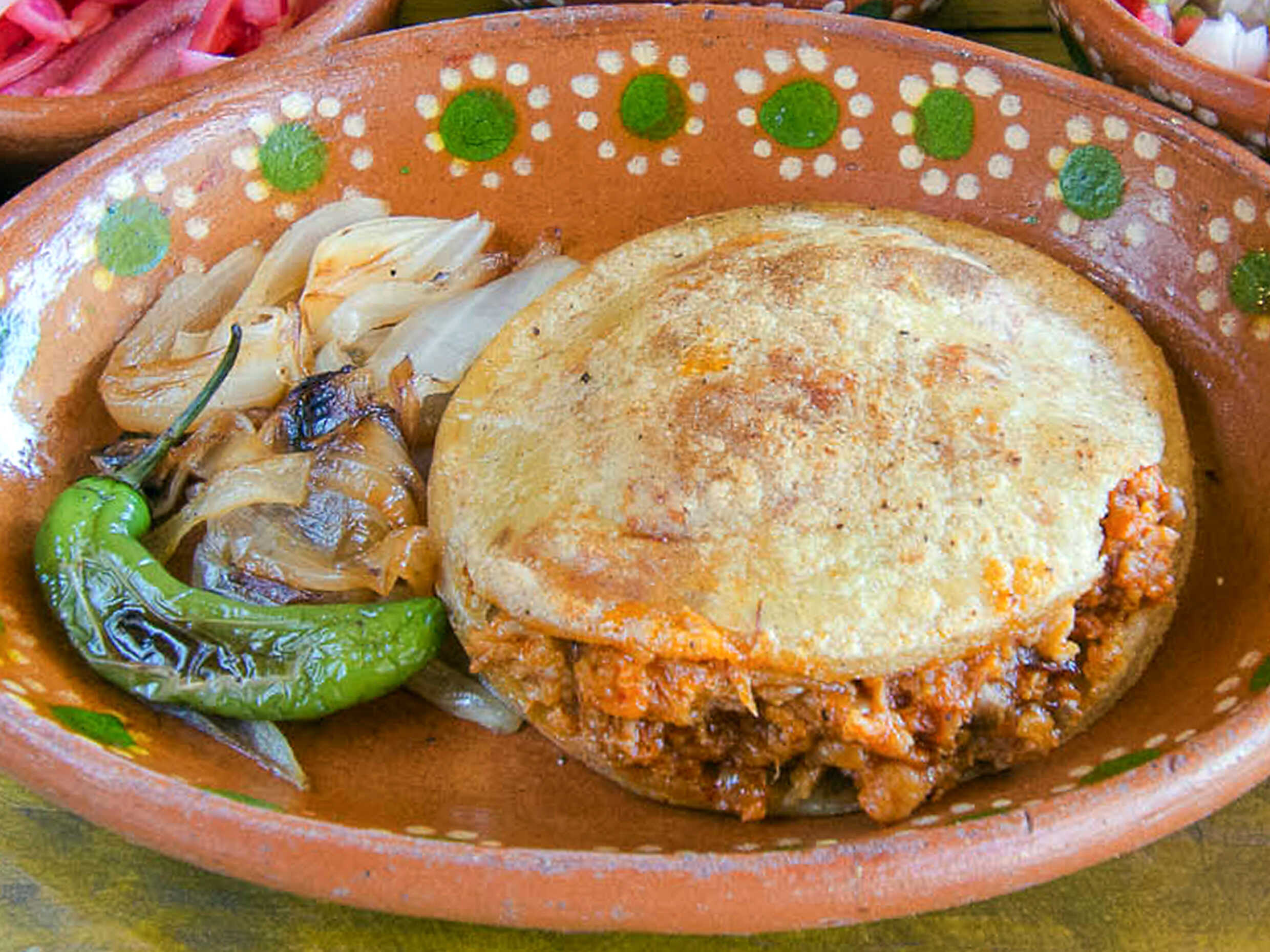 Gordita rellena de carne de puerco con chile