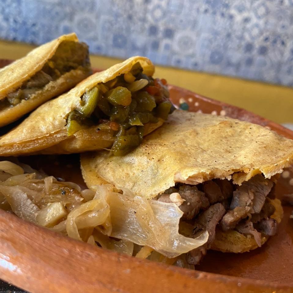 Tres gorditas rellenas del guiso a elegir (el que mas te guste).