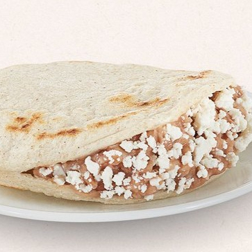 gordita de maiz recien hecha con frijoles refritos acompañados de queso seco semiañejo