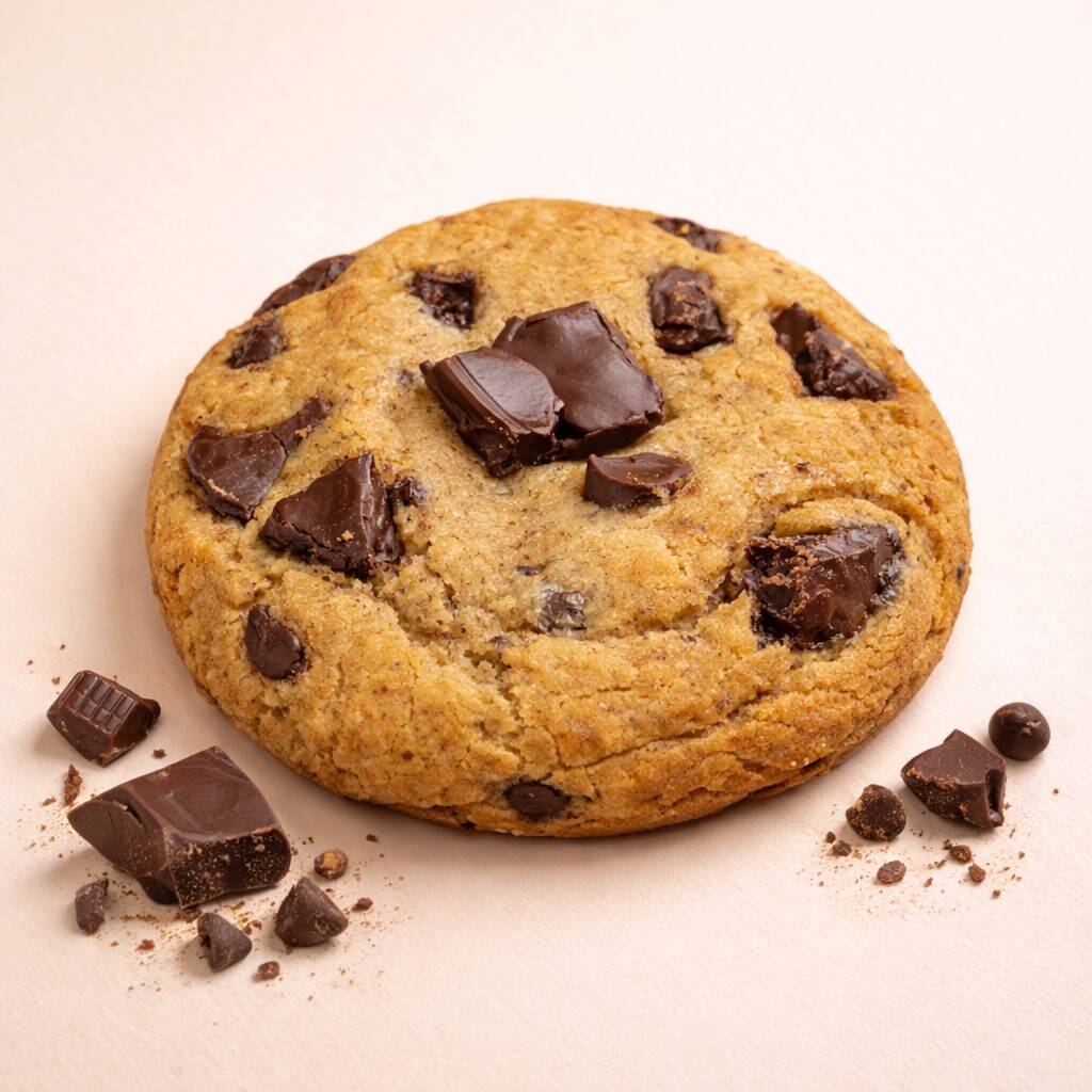 Galleta estilo New York, crujiente por fuera y suave por dentro, con trozos de chocolate semi amargo.