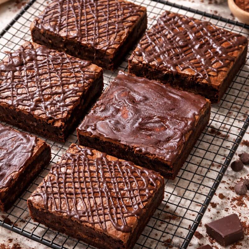 Brownie de chocolate intenso, suave y húmedo por dentro.