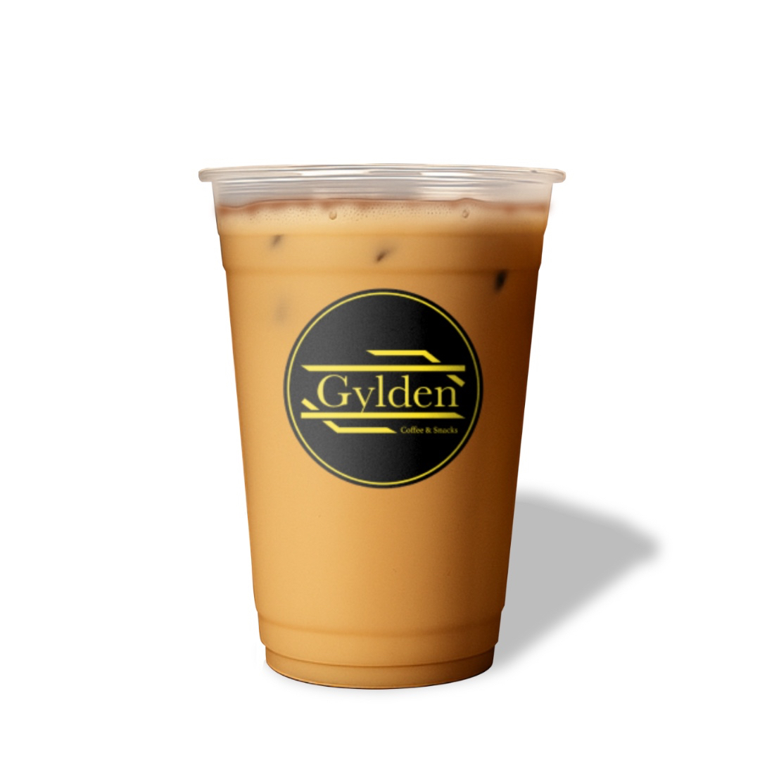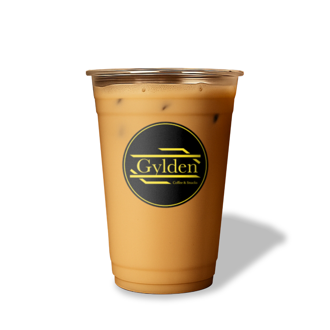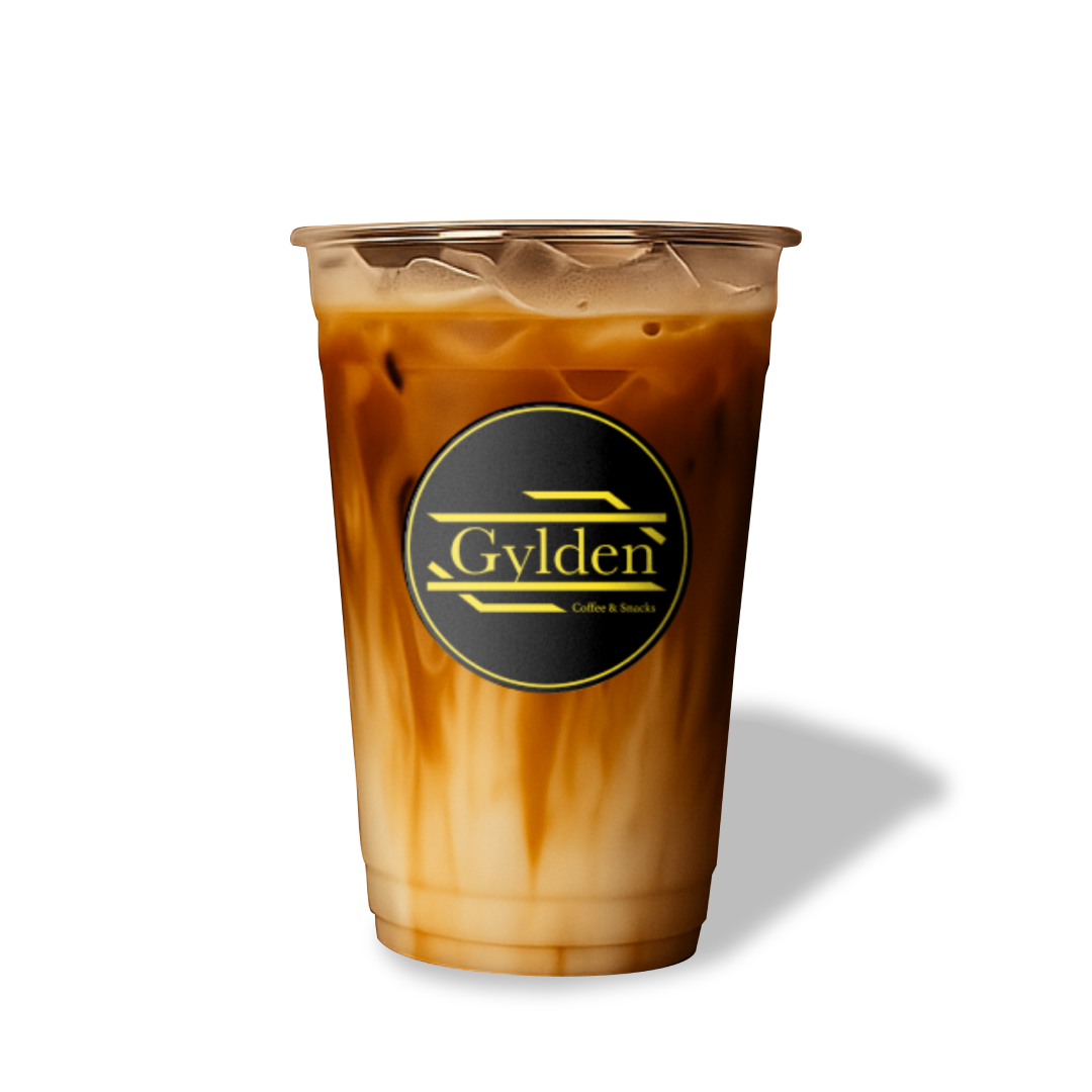 Café expresso con leche, hielos y un toque de caramelo.