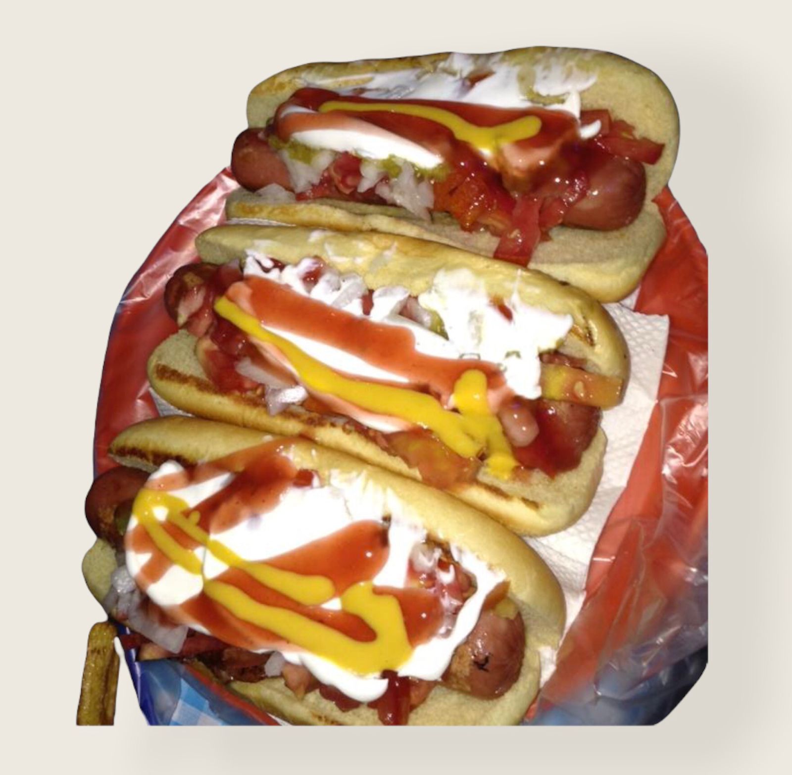 Salchicha pierna más piña más queso asadero fundido en plancha.