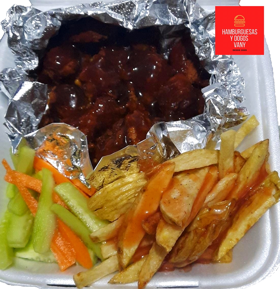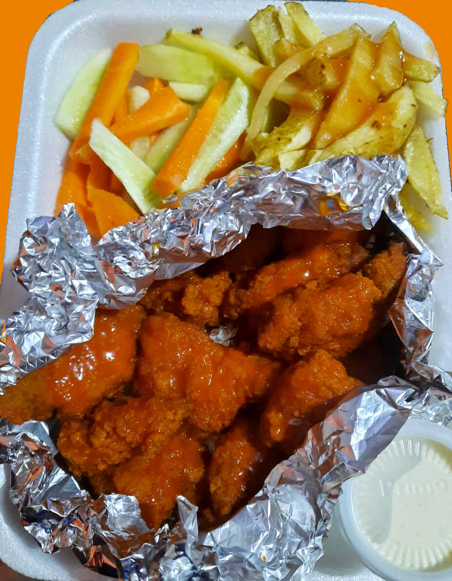 250 grs de boneless buffalo acompañados de vegetales, papas a la francesa y aderezo.