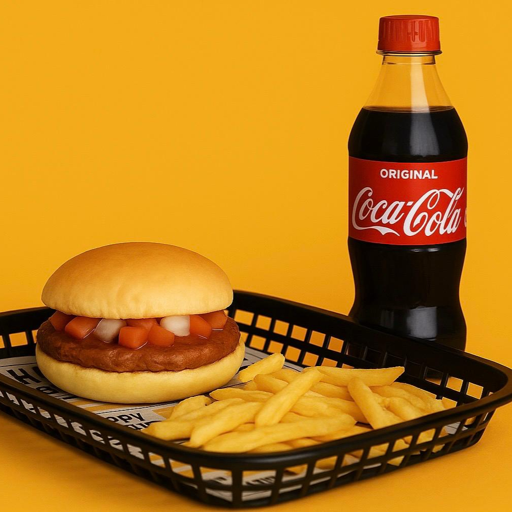 Happy Burger + Papas Fritas 150 gr + Refresco a elegir
