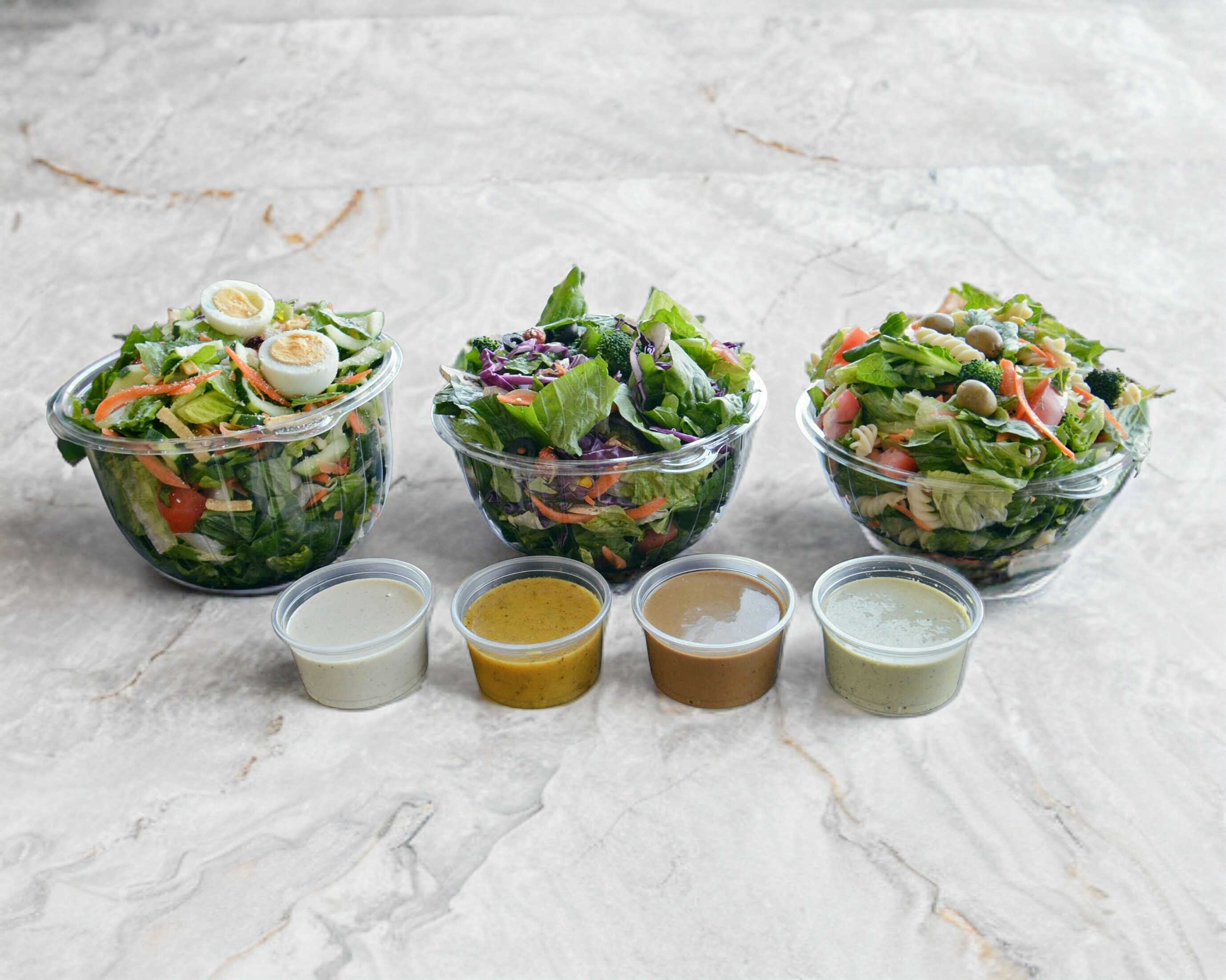 Ensalada con base de lechuga, mas tres vegetales de tu elección y una porción de atún, elige 2 tipos de aderezos; ranch, chipotle, cilantro, vinagreta, blue cheese, jalapeño, mango miel, mostaza miel, ajonjoli, chia.