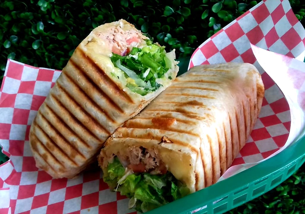 Pollo a tu elección ( plancha, bbq, chipotle, cilantro, hierbas finas, pimienta limon, cilantro) , queso y vegetales ( elige: pepinillos, jalapeño, cebolla y jitomate)