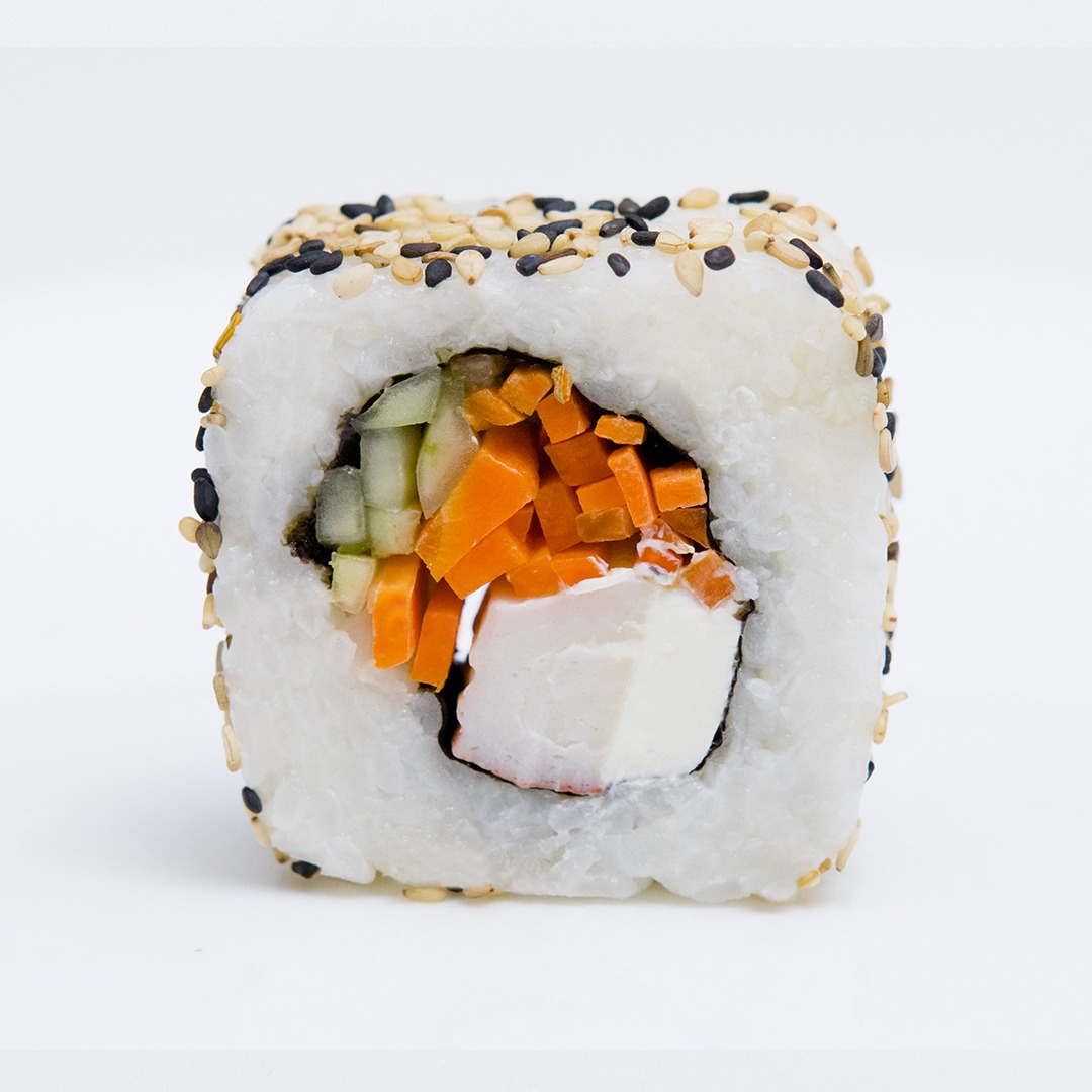 Alga por dentro relleno de surimi, pepino, zanahoria y queso crema.
