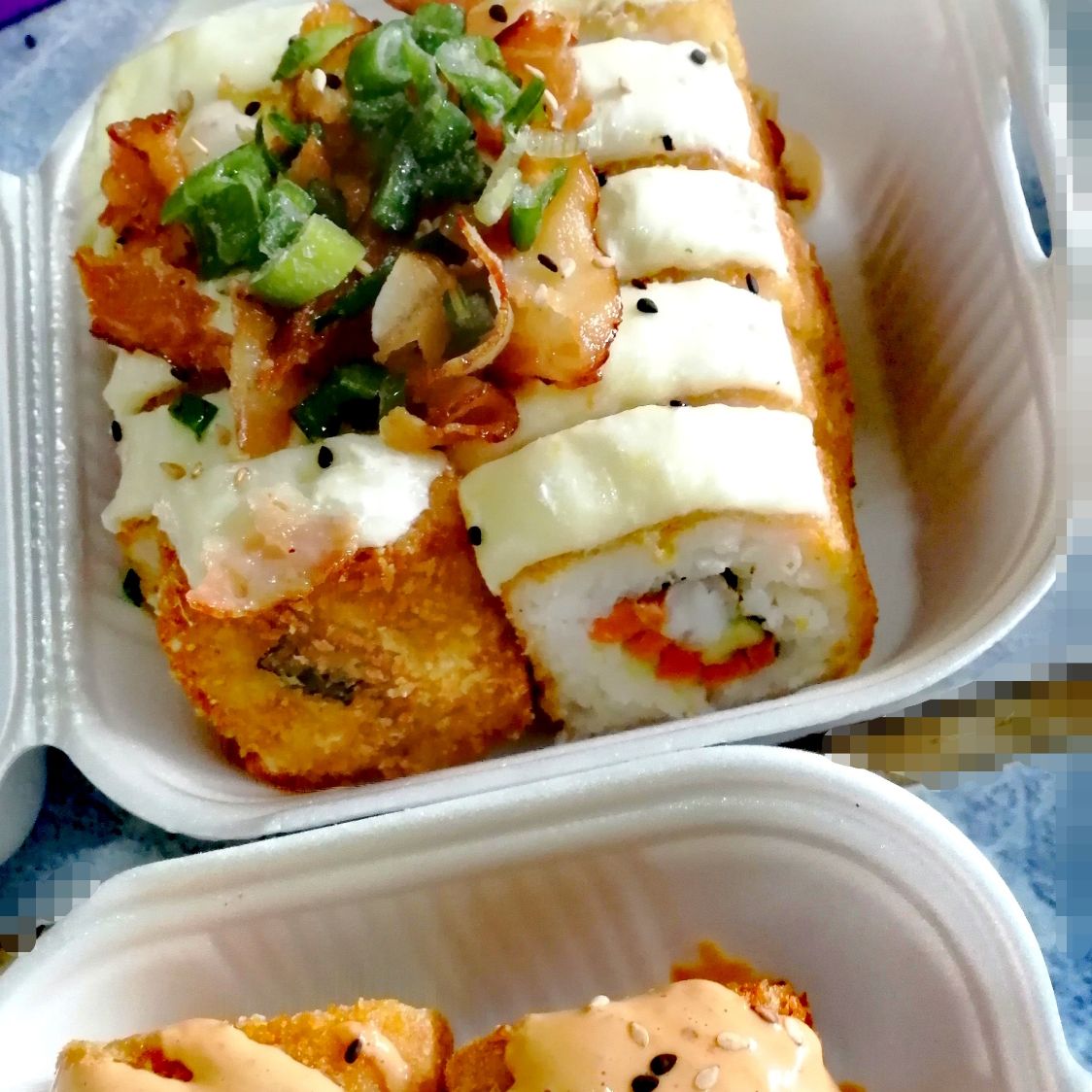 Xd: Philadelphia, surimi, pepino y zanahoria. Xf: aguacate, spicy de camarón (con trocitos de camarón), cebollín, sriracha y ajonjolí.