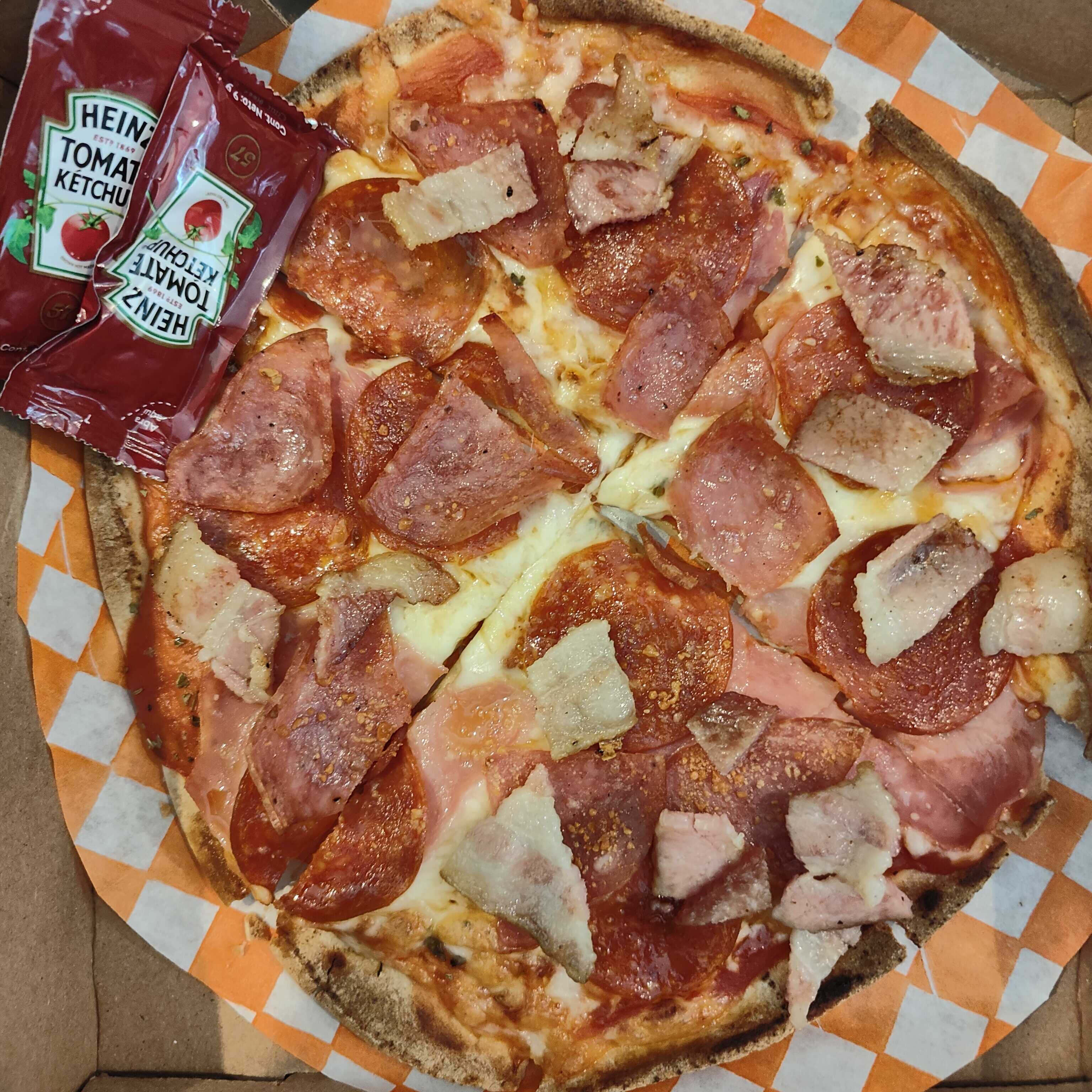 Pizza individual de 20 cm de jamón, peperoni, salami, tocino