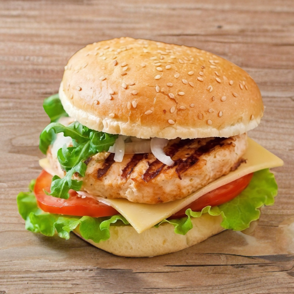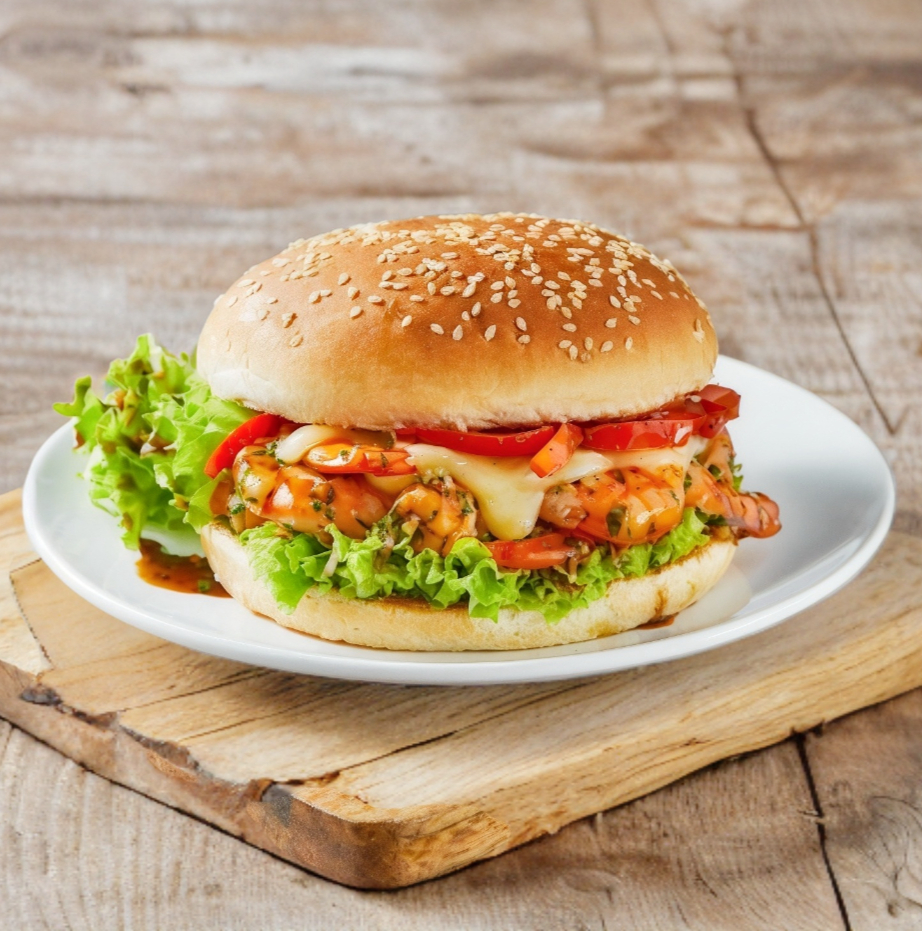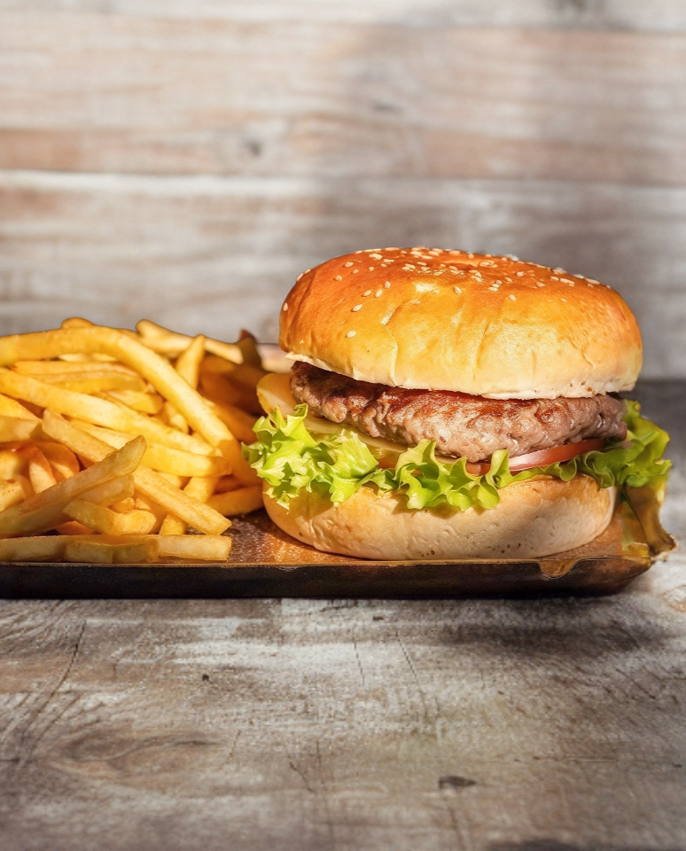 Hamburguesa de Res, con vegetales, incluye papas fritas