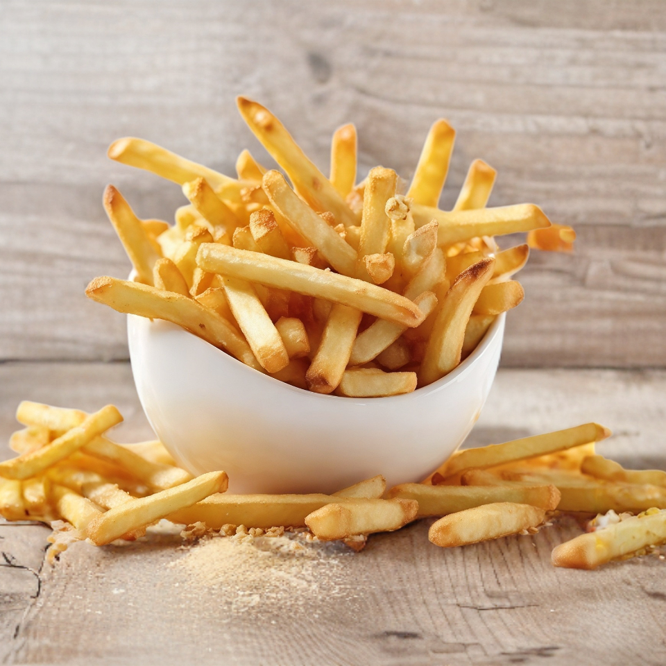Pollo a la plancha en salsa cremosa con vegetales, incluye papas fritas