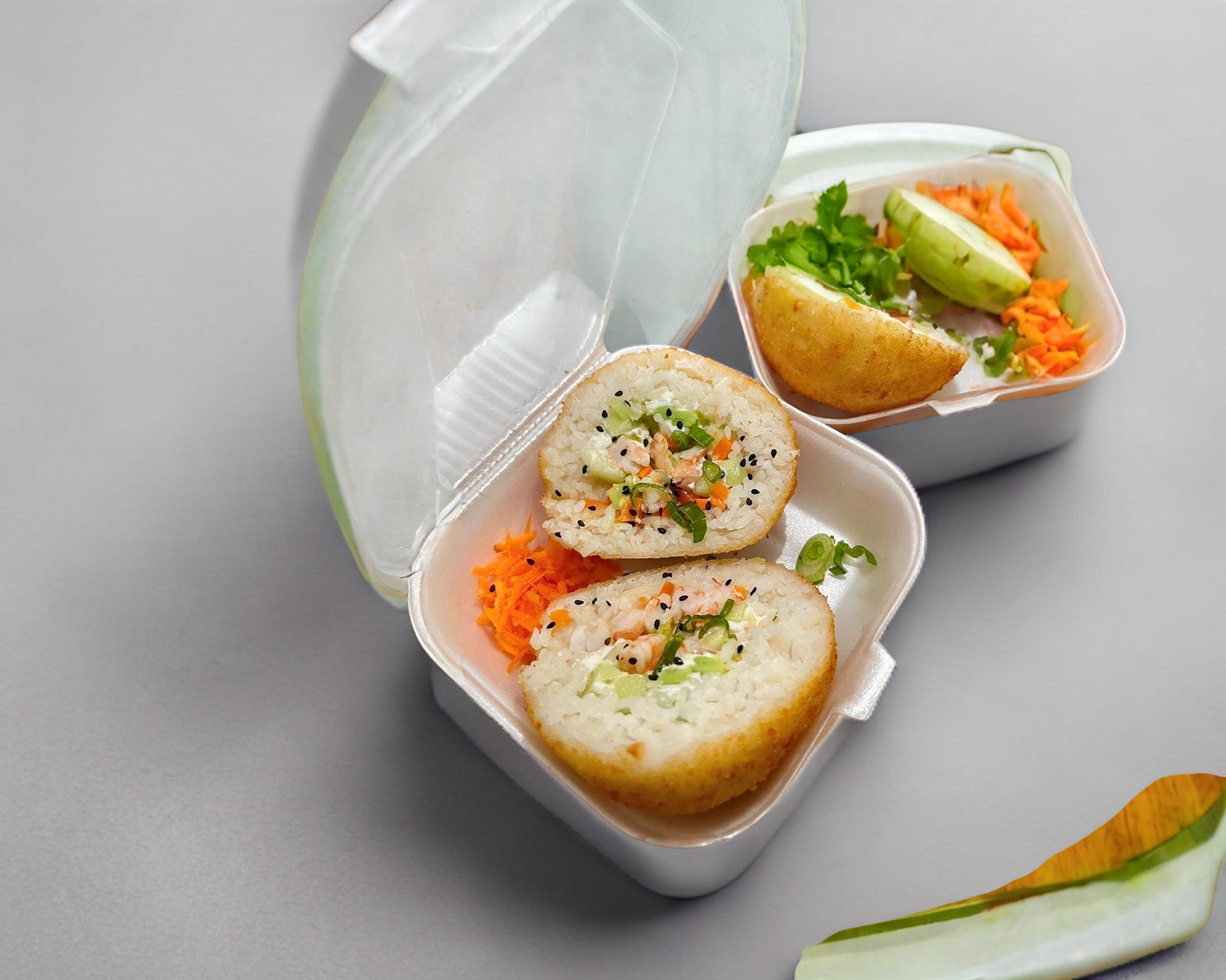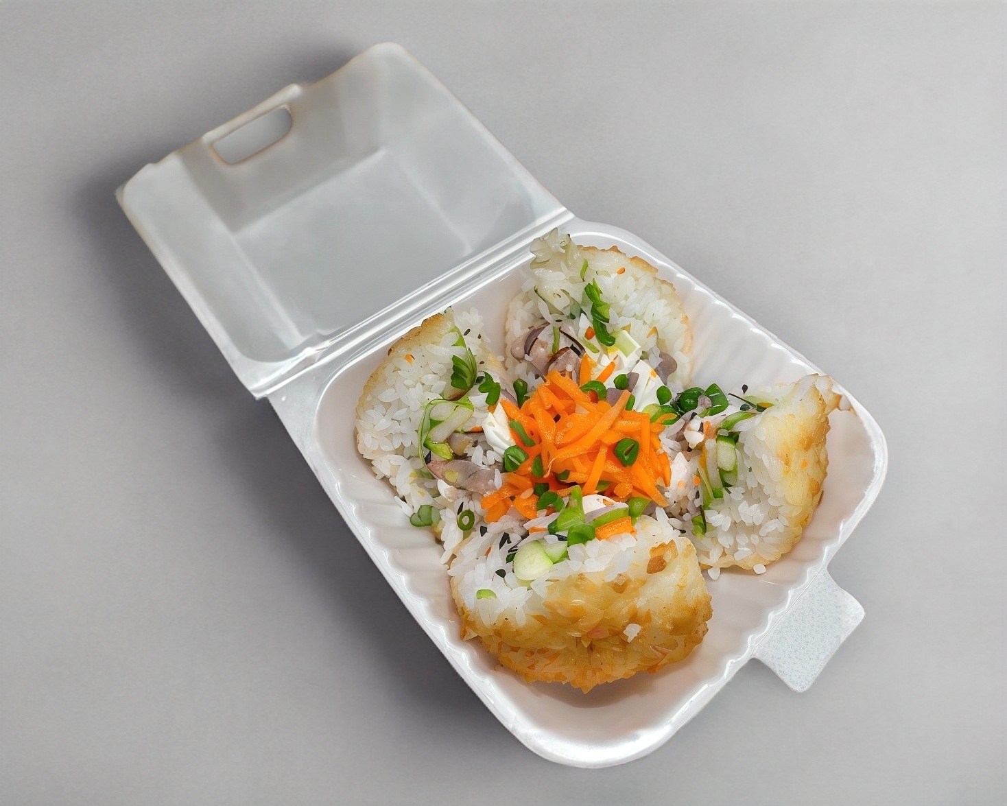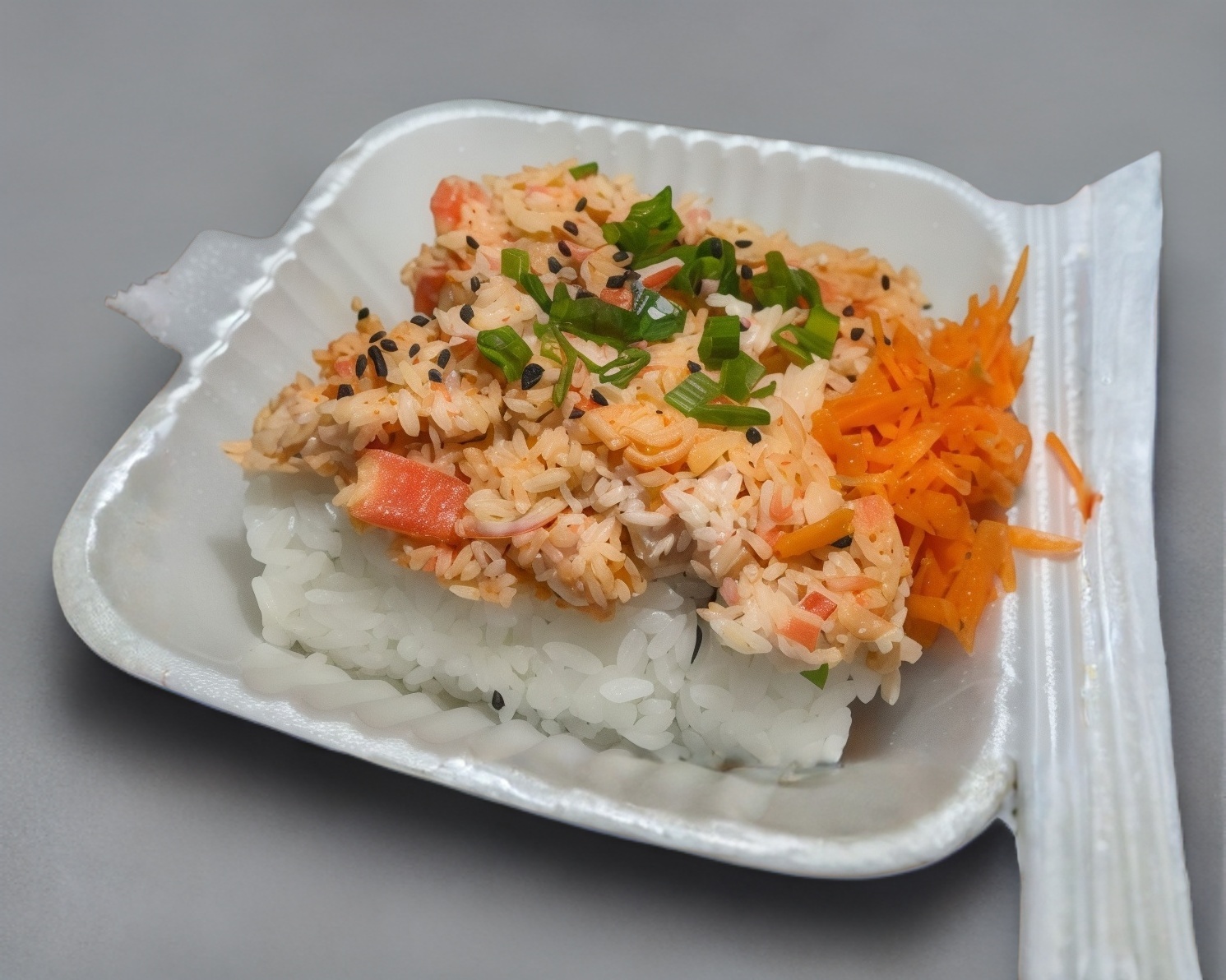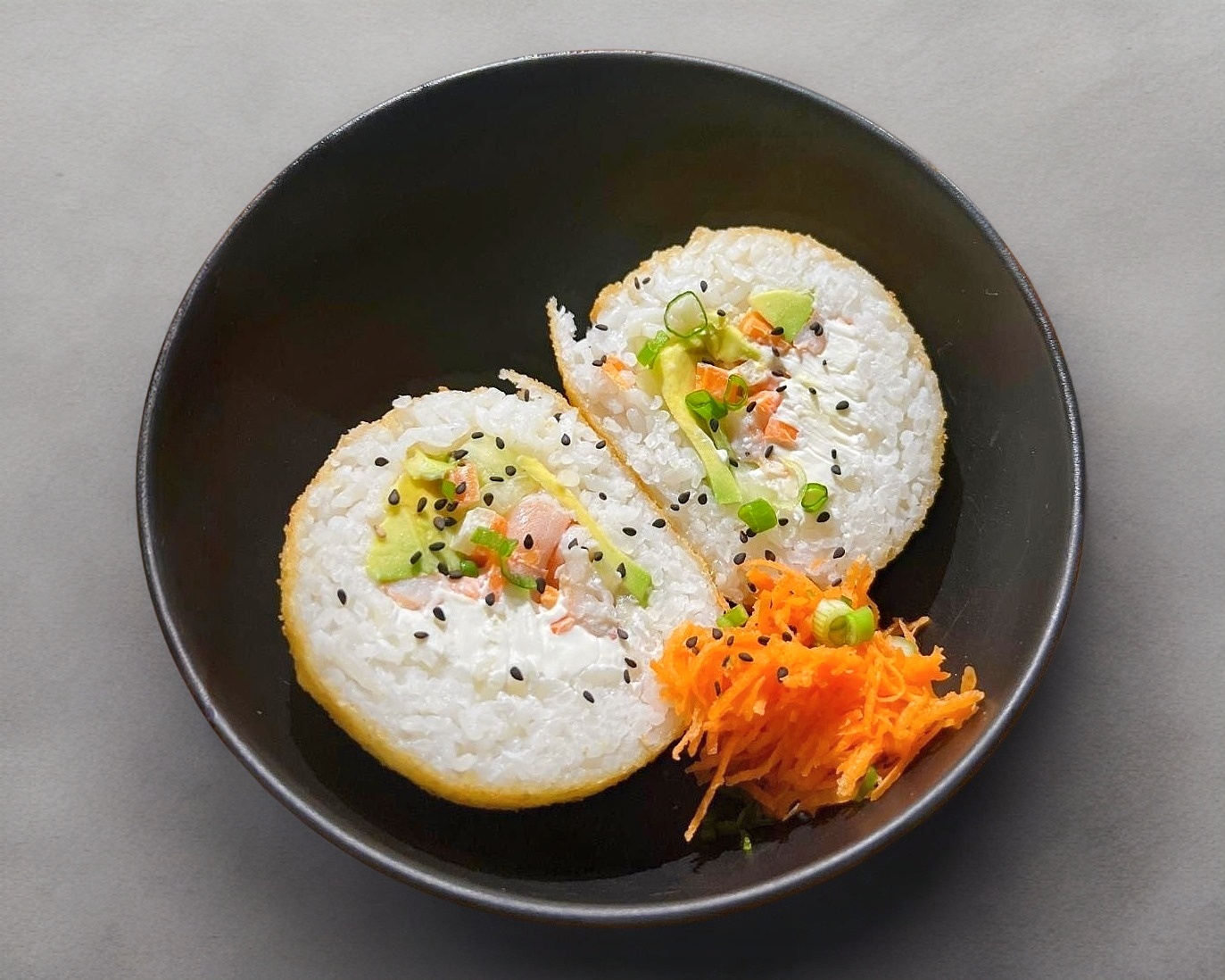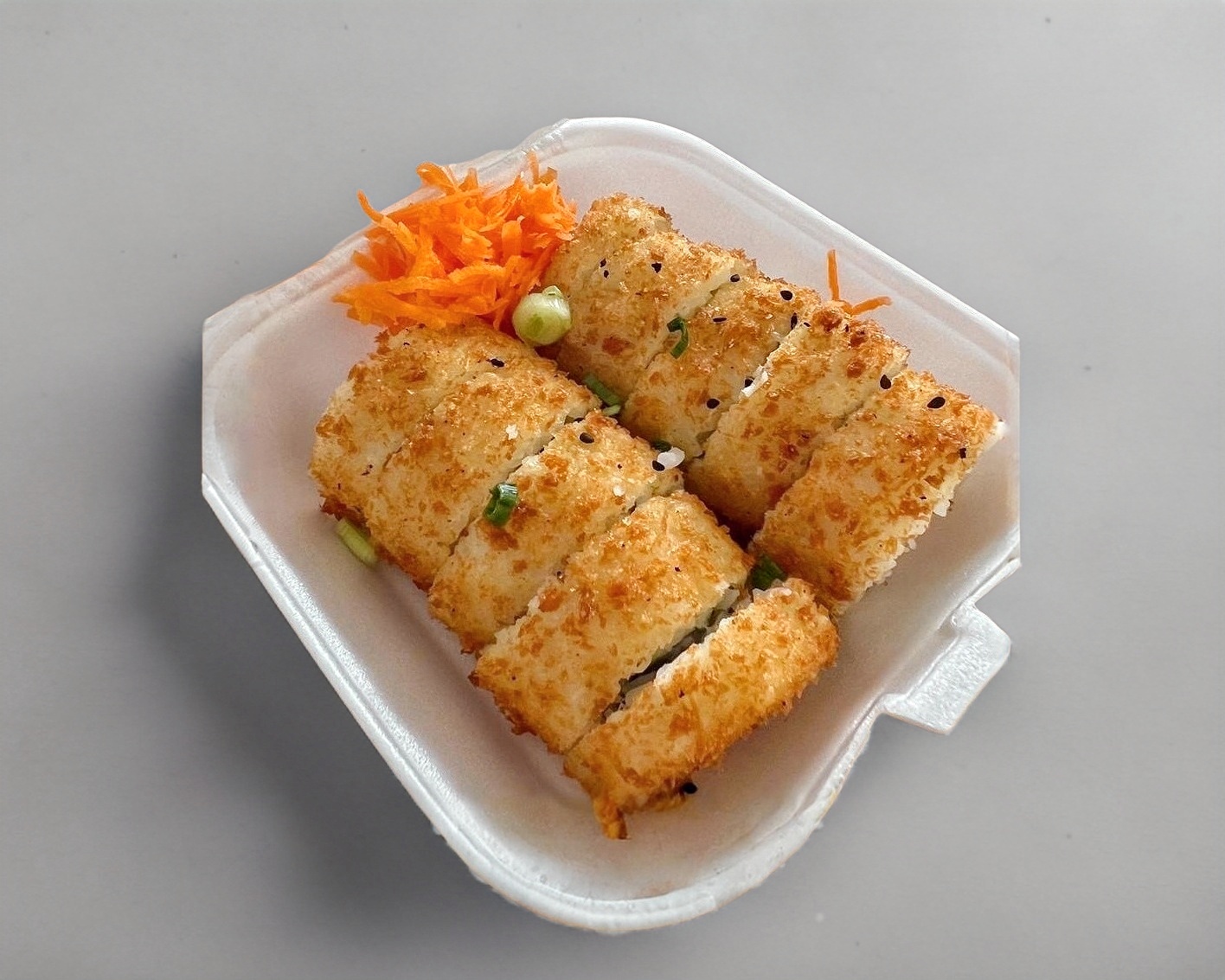 Porción personal: 1 rollo empanizado (10 piezas) relleno de camarón y carne de res, cubierto con aderezo de chipotle (se envía por separado). Incluye salsa de soya y chile con soya