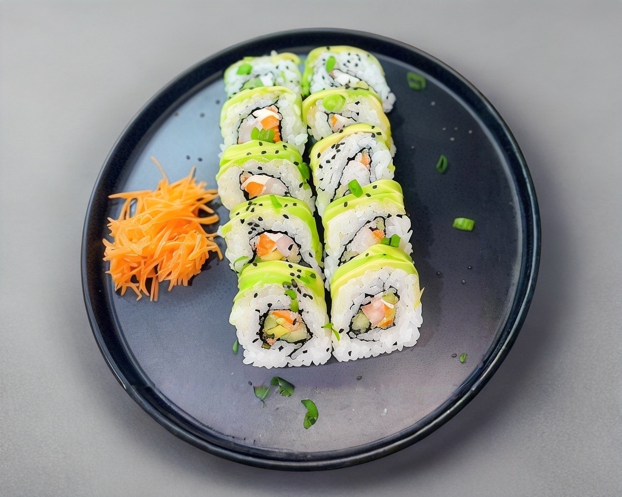 Arroz blanco con aguacate, philadelphia, camarón, surimi, pulpo y salmón